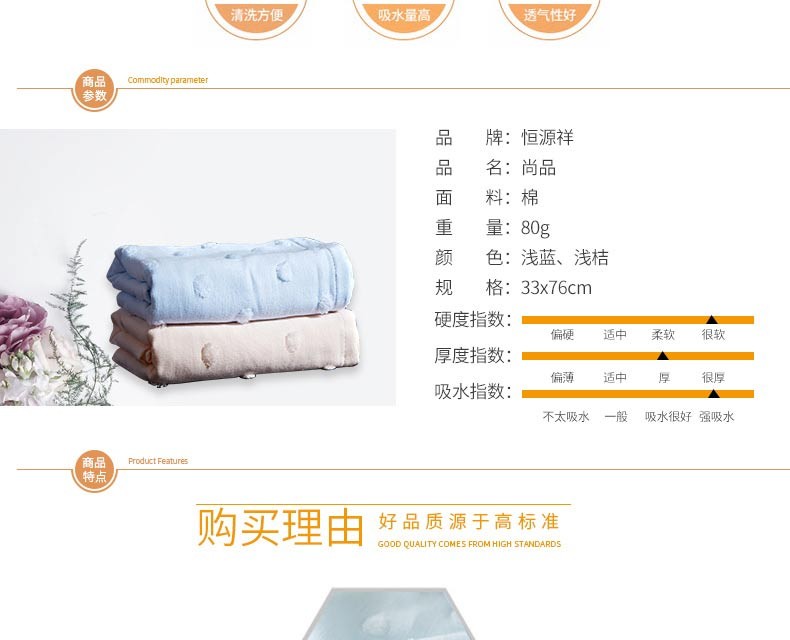 恒源祥(HYX) 恒源祥礼业尚品毛巾 尚品四条装 33*76