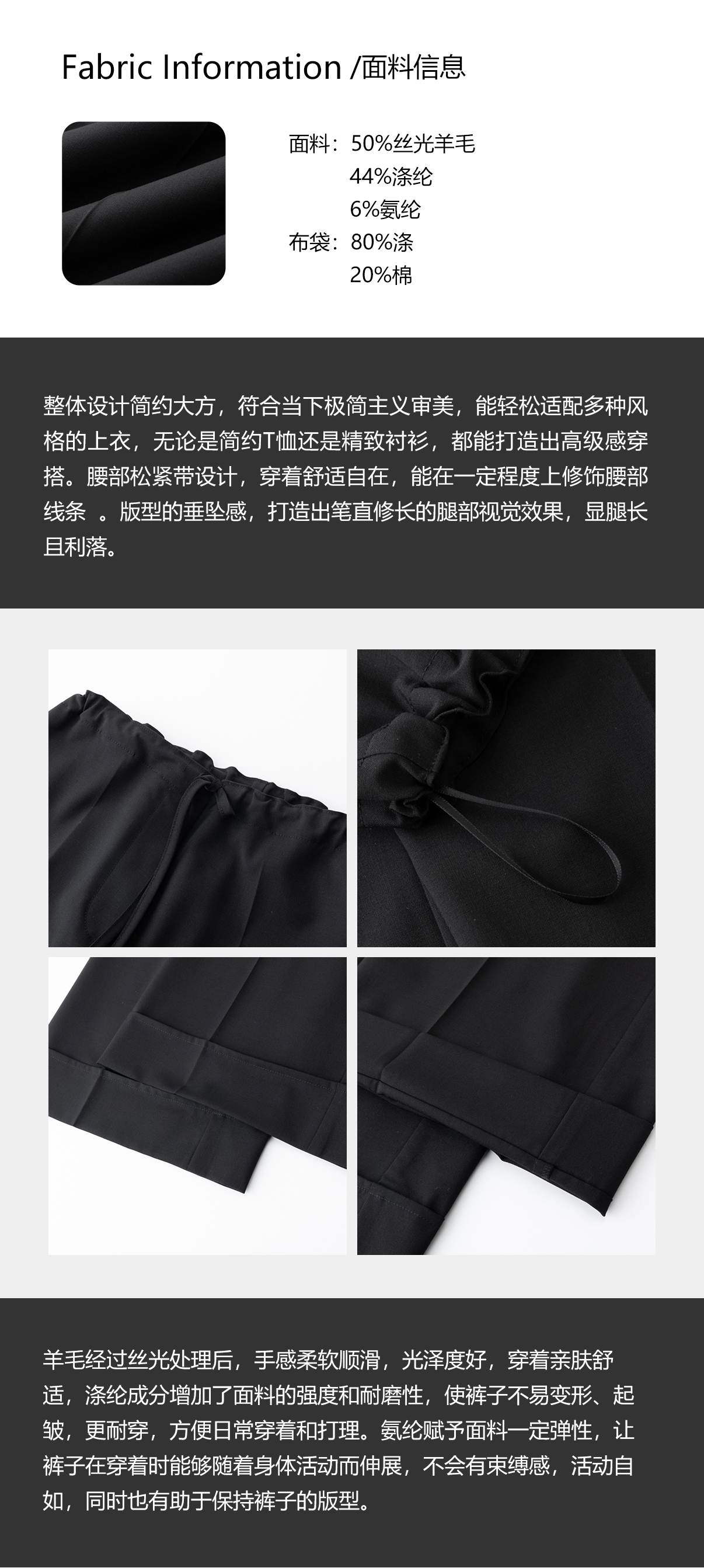 COCO ZONE 刘一一 【丝光羊毛混纺】简约松紧腰带休闲裤 CD2A1185