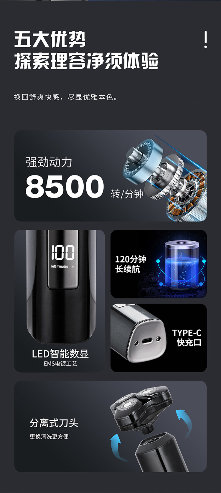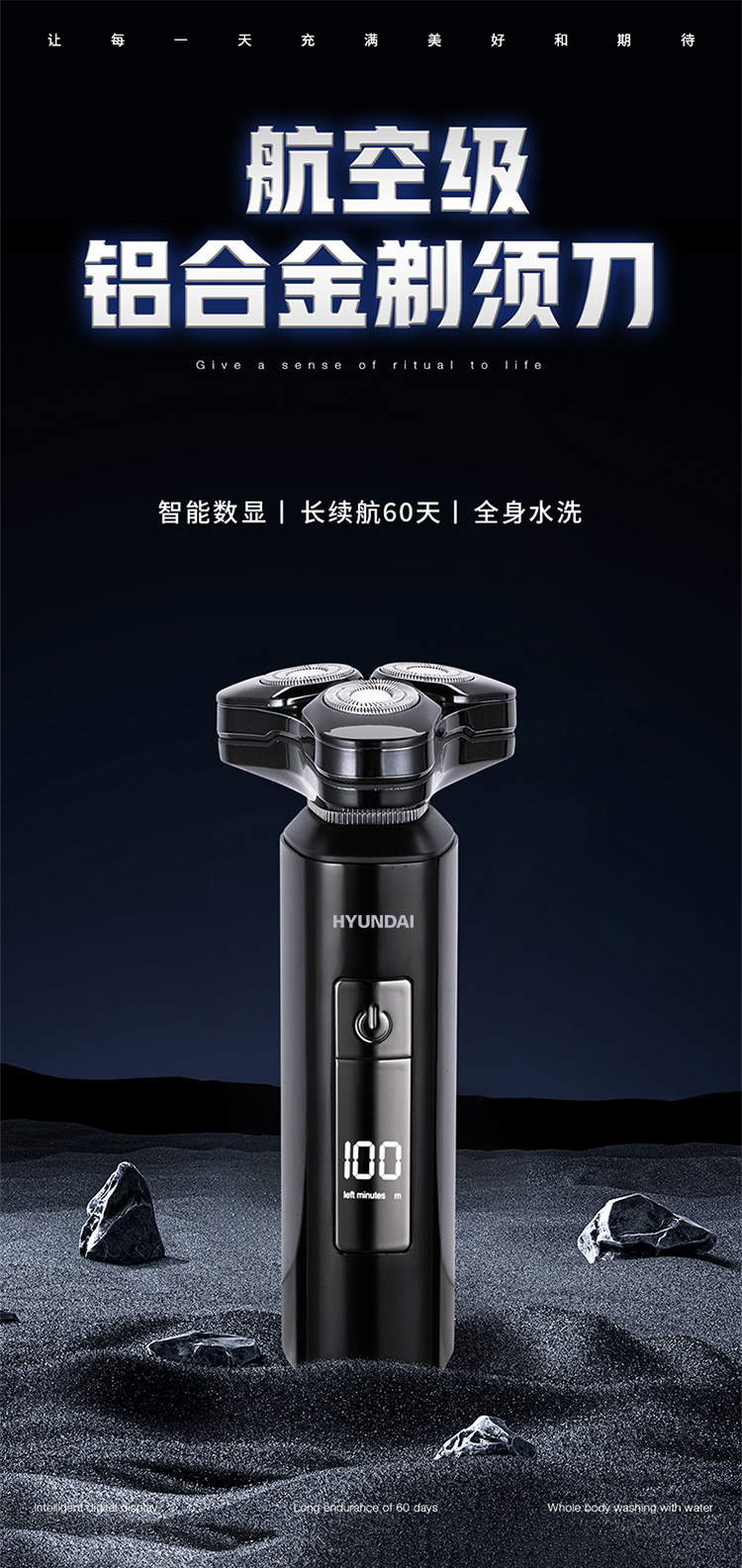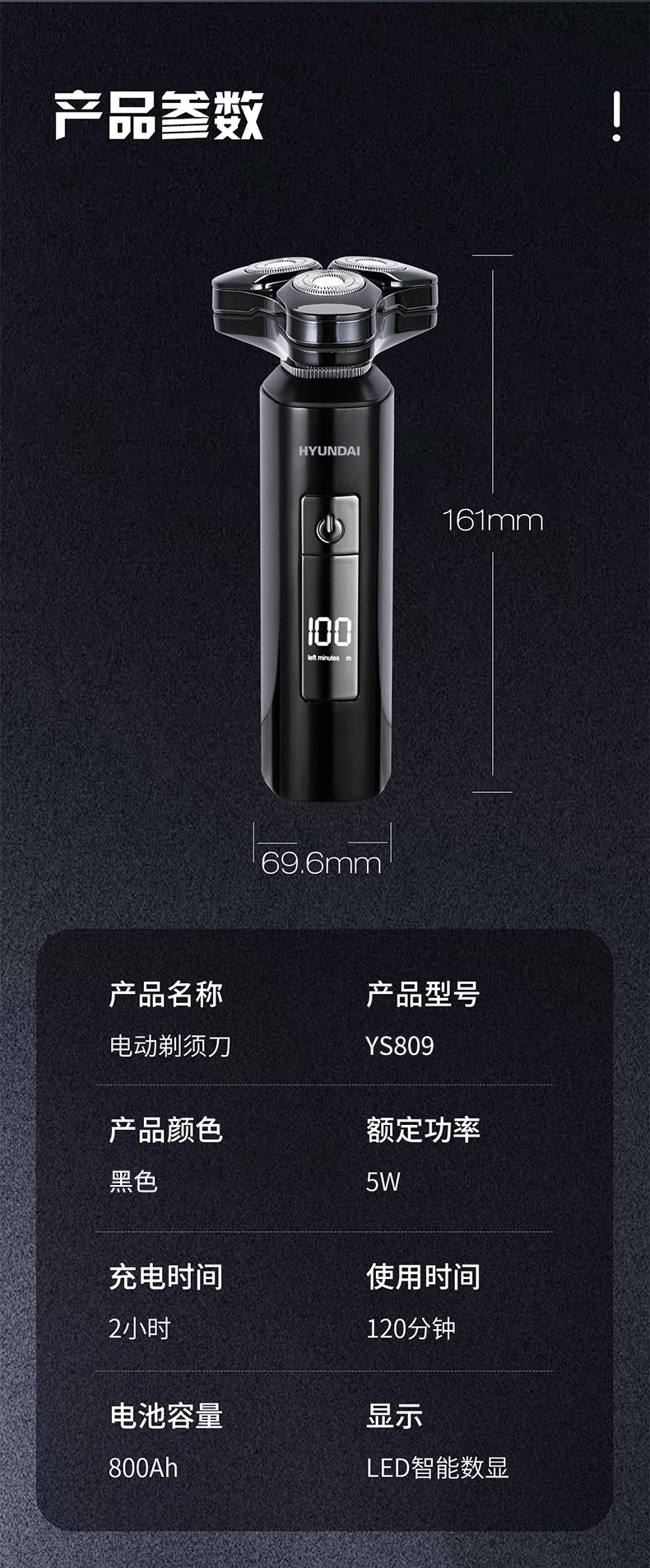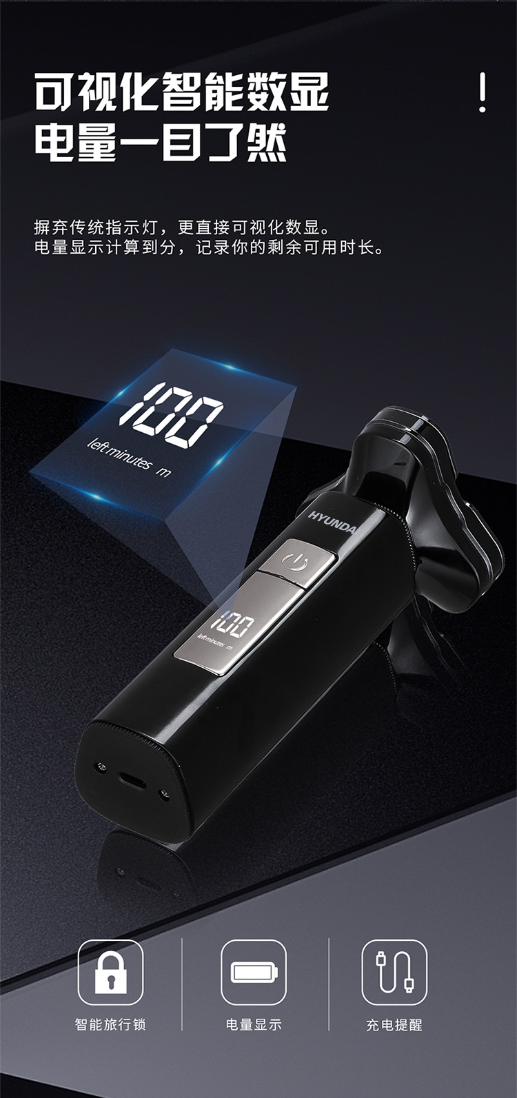 HYUNDAI 全金属三头数显剃须刀 YS809