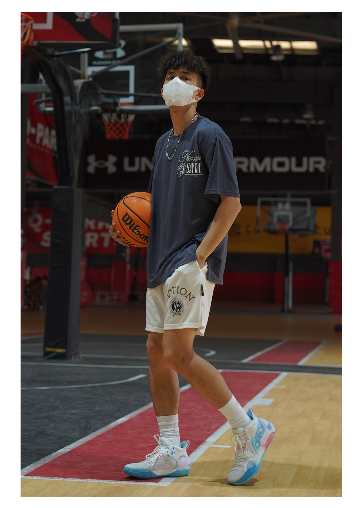 LUSHISI[水星]白色运动篮球短裤不过膝四分裤美式跑步宽松潮流裤