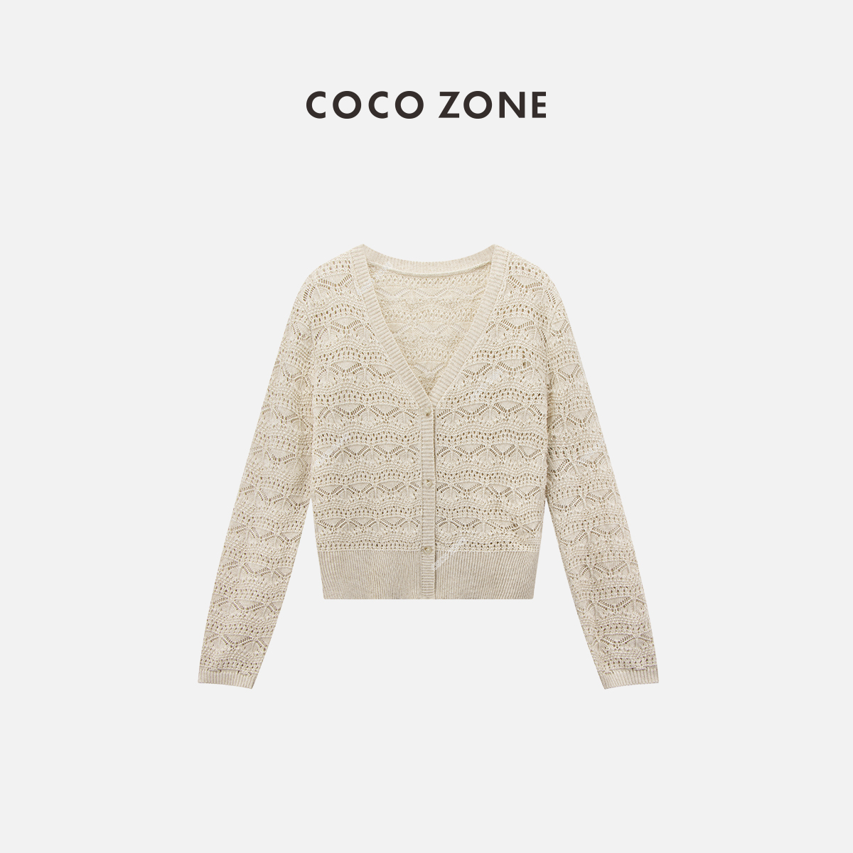 COCO ZONE "洛丽塔"时尚高级感镂空V领针织衫百搭长袖单排扣上衣CC2B0733