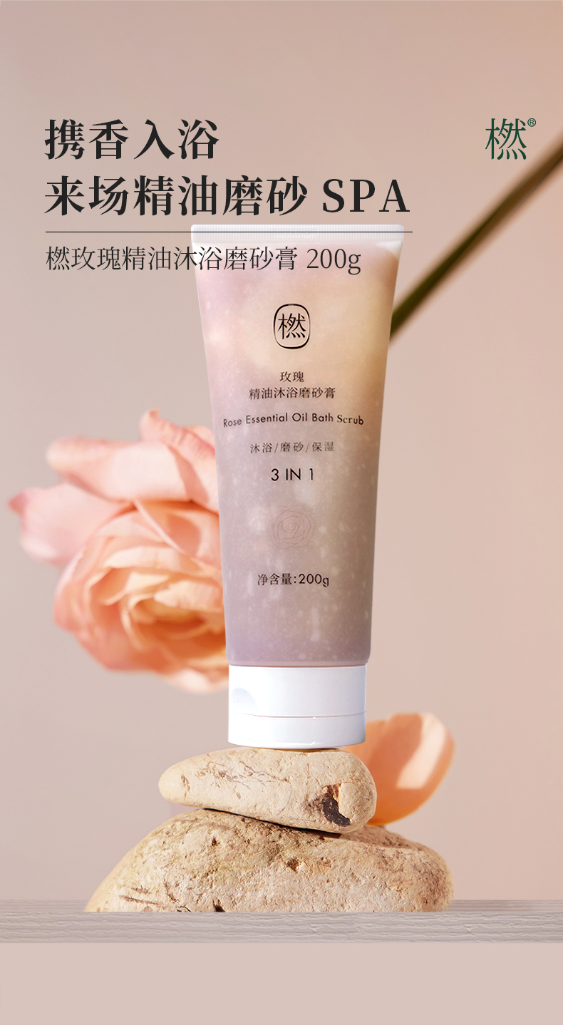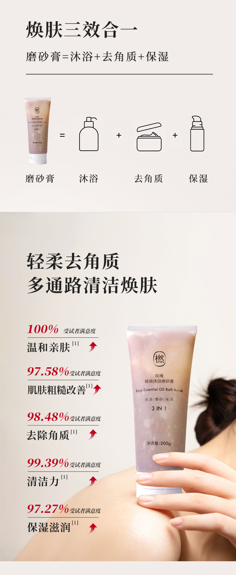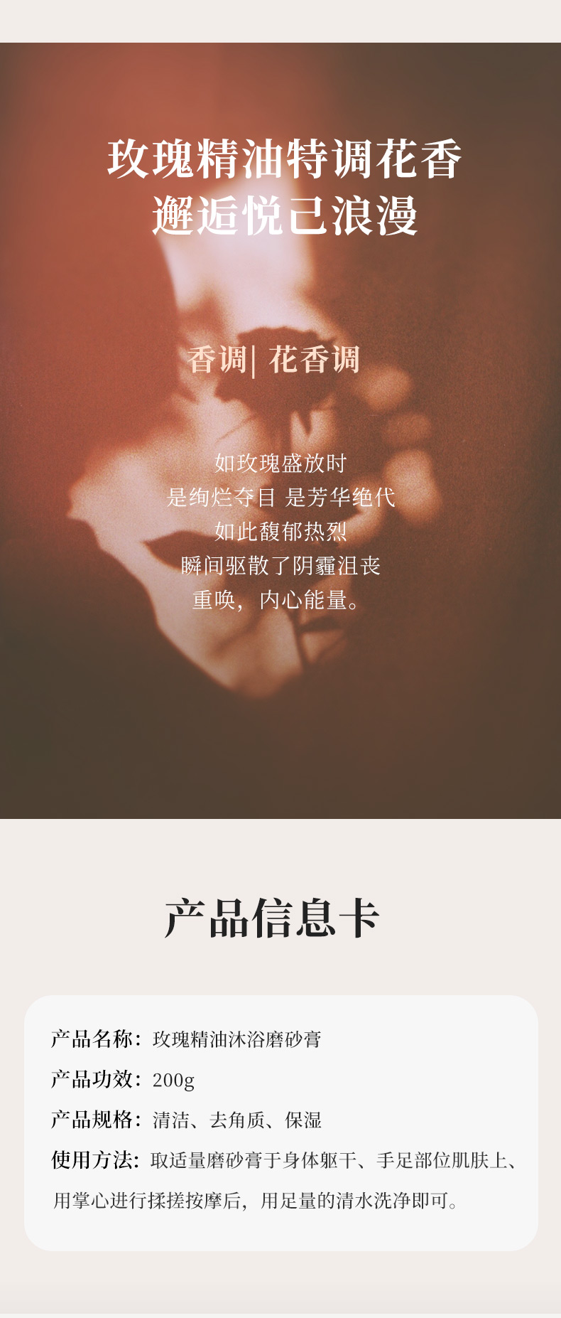 橪玫瑰精油沐浴磨砂膏200g 赠试用装6g*1 沐浴刷*1