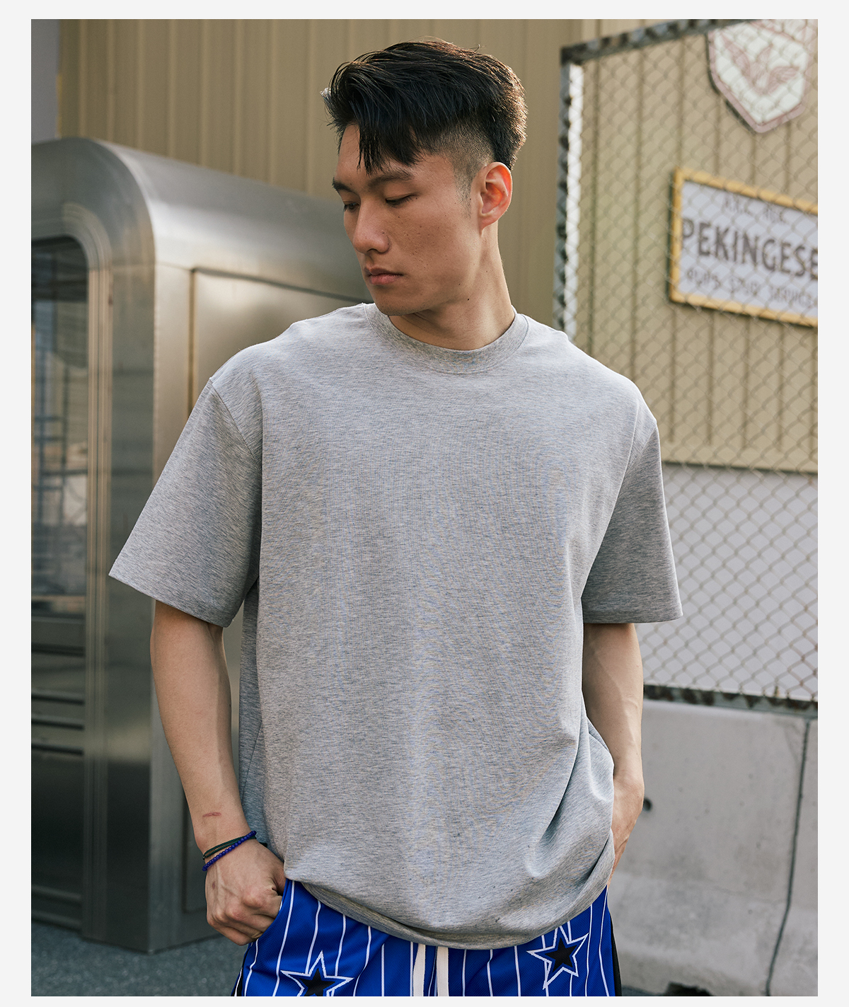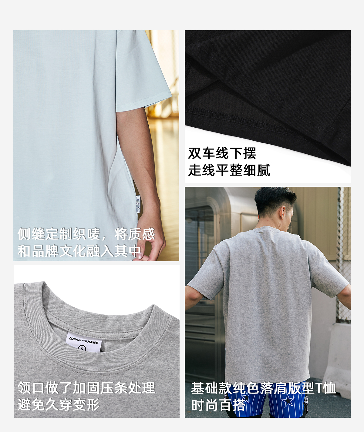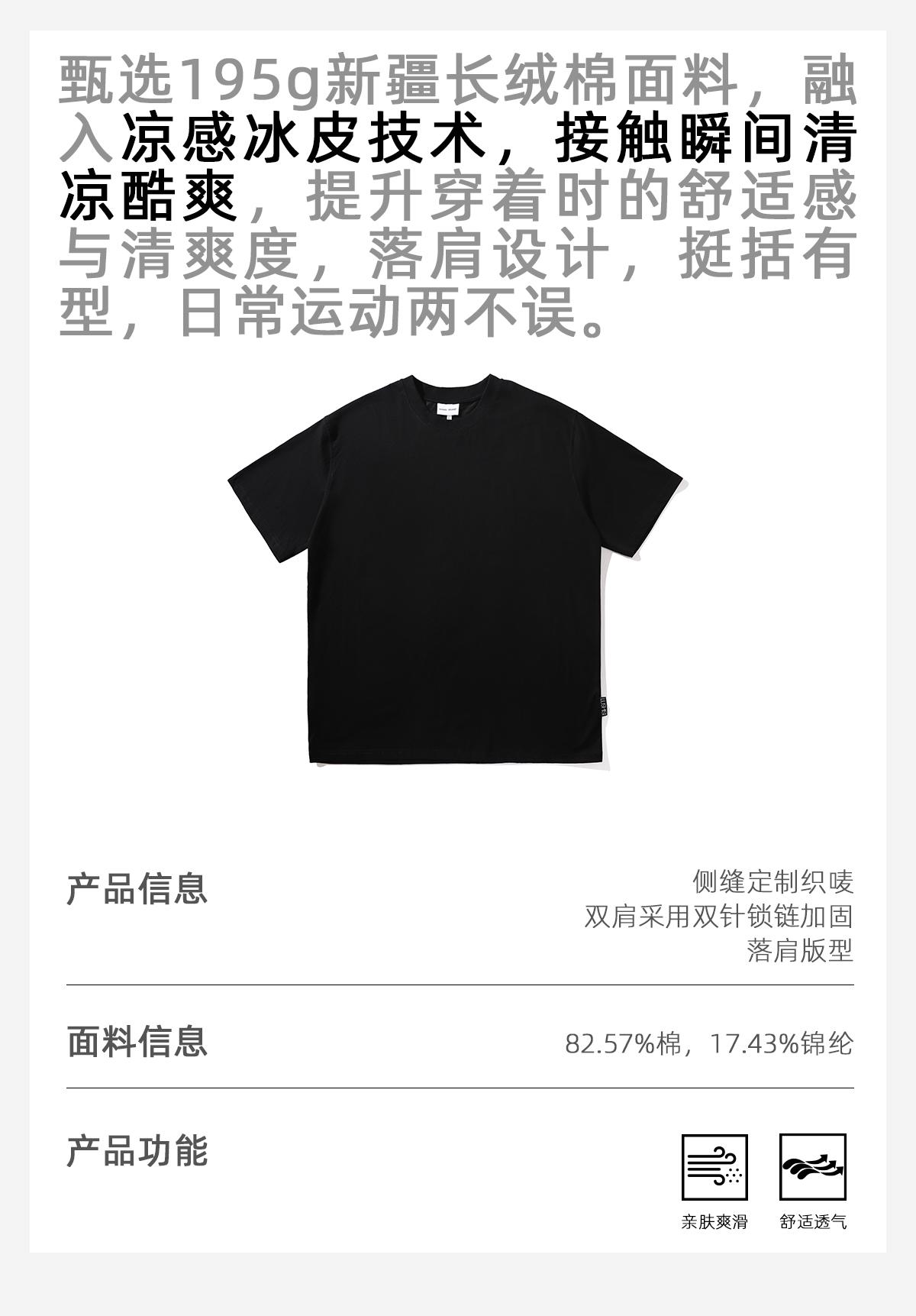 LUSHISI【新疆长绒棉】195g凉感冰皮面料宽松直筒基础纯色短袖t恤