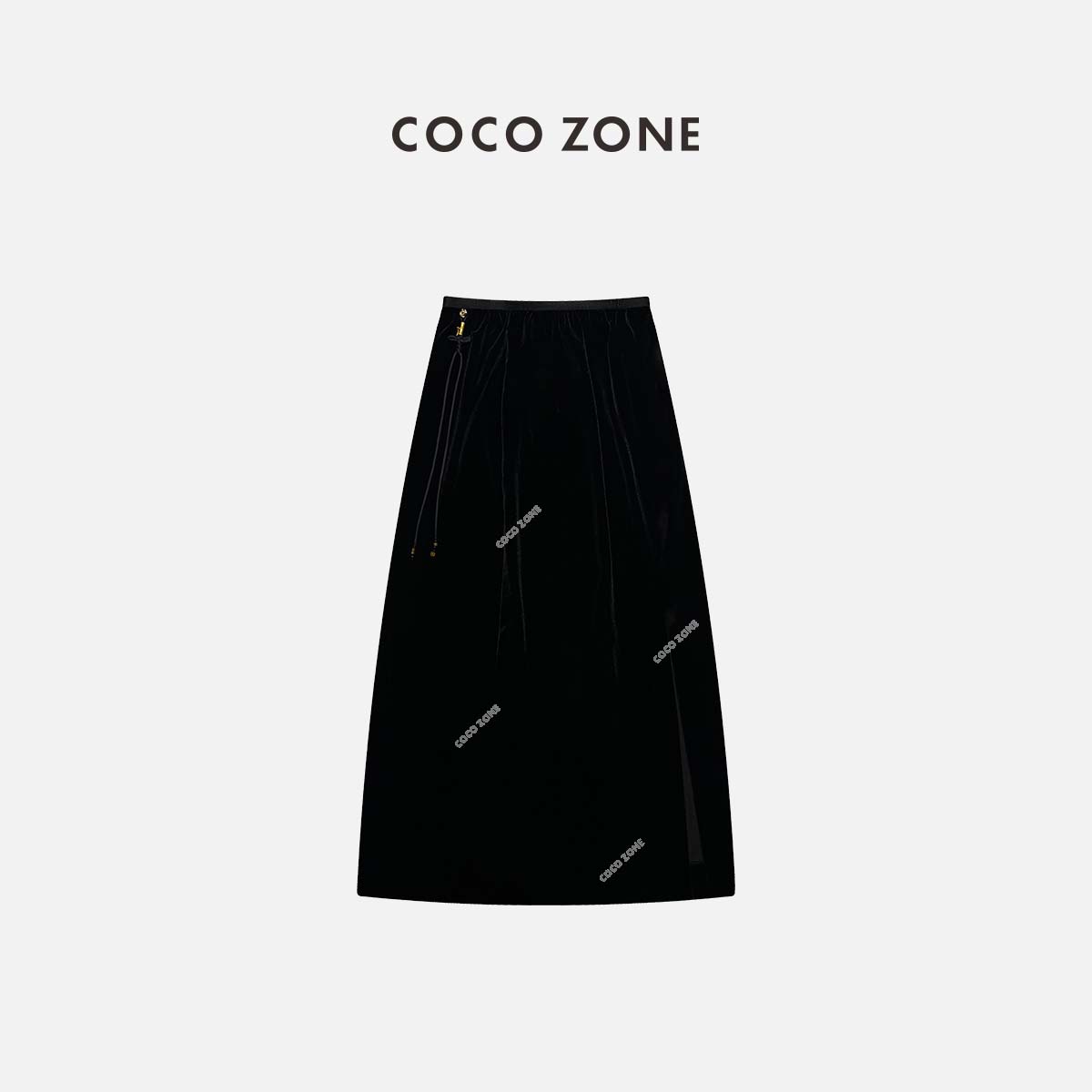 COCO ZONE2024新中式国风半身裙复古气质丝绒包臀裙CC2A0164