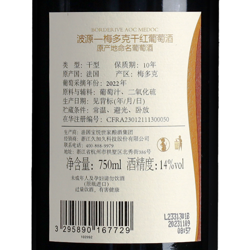 【久】波源—梅多克 干红葡萄酒750ml/2瓶