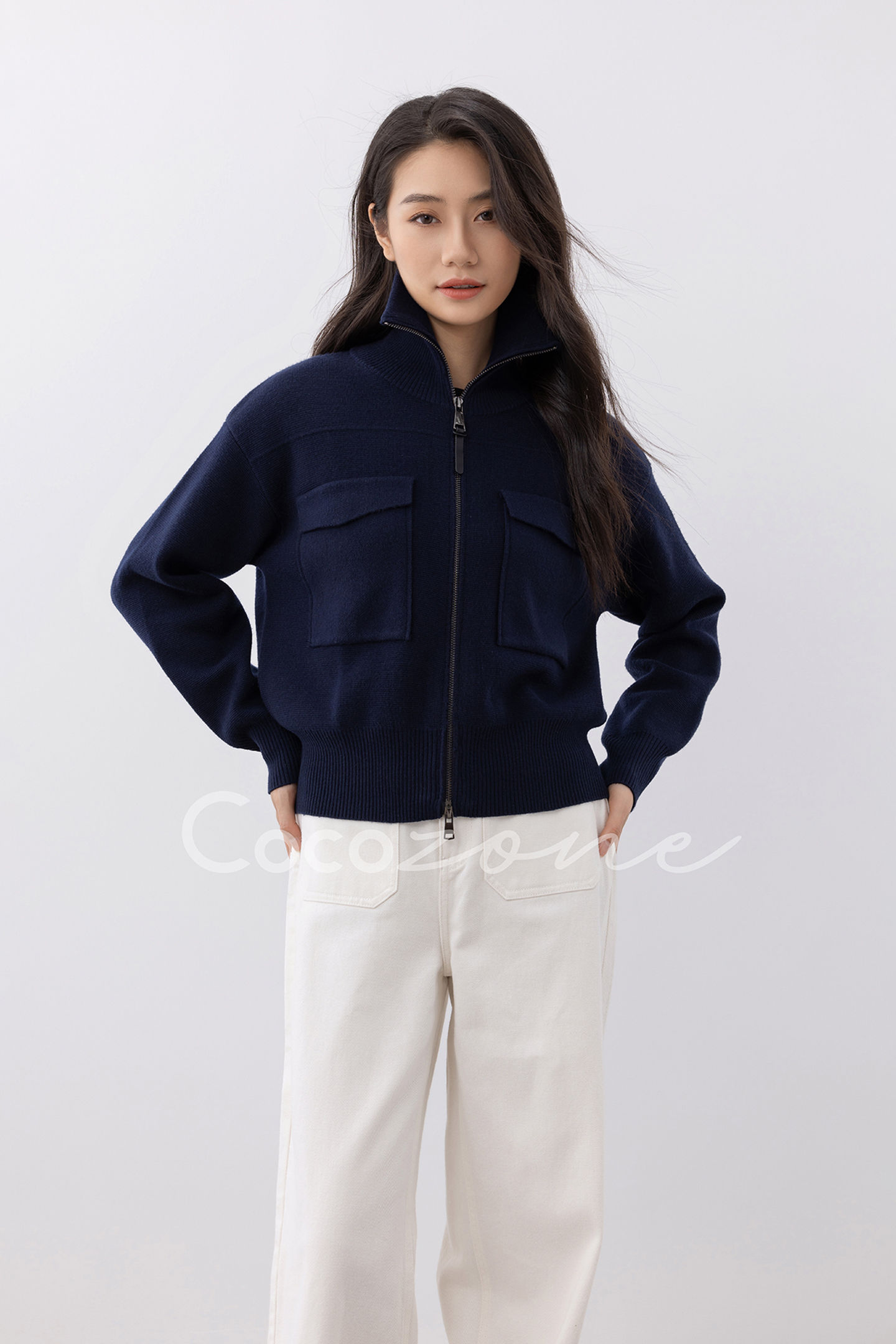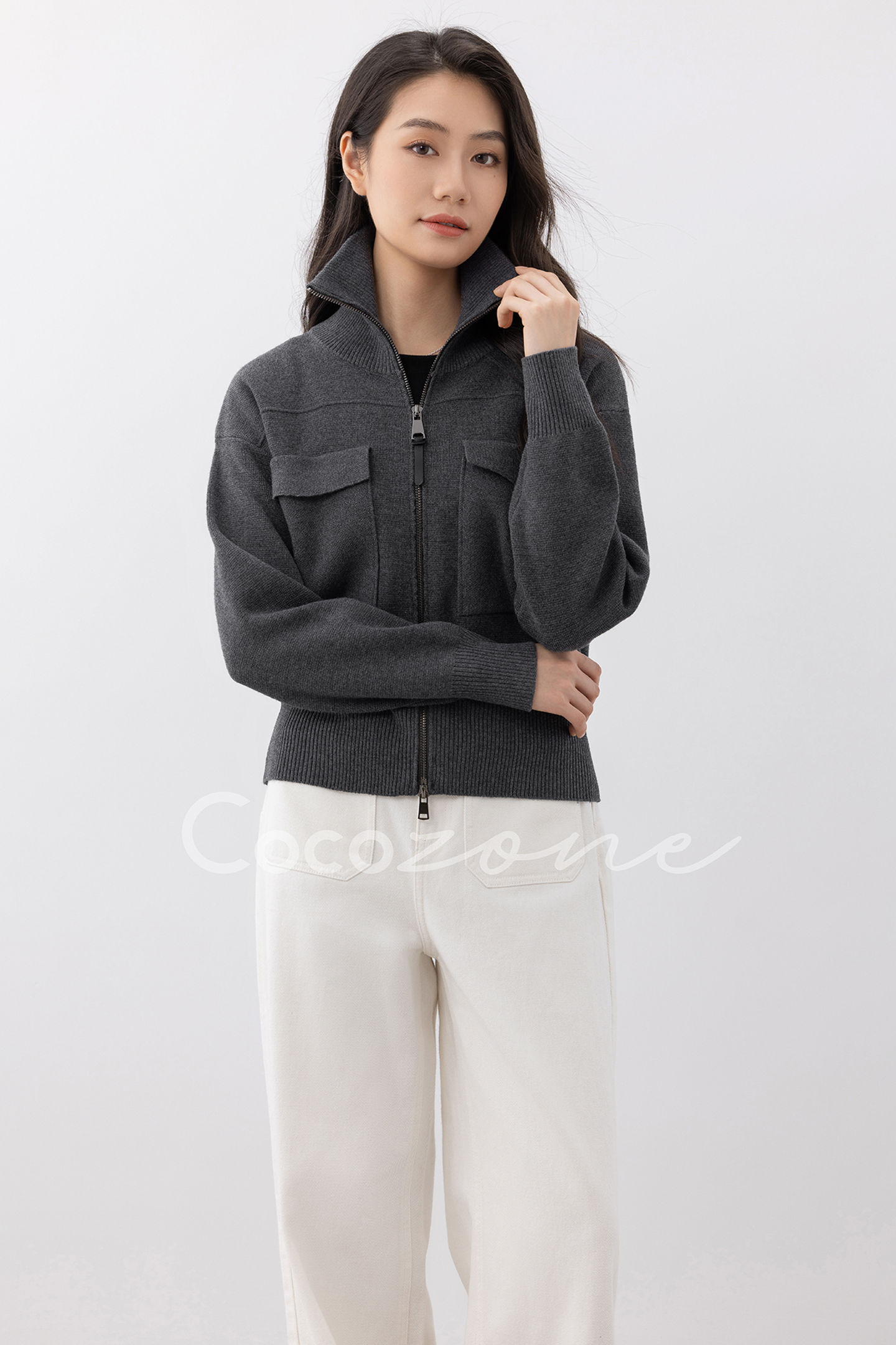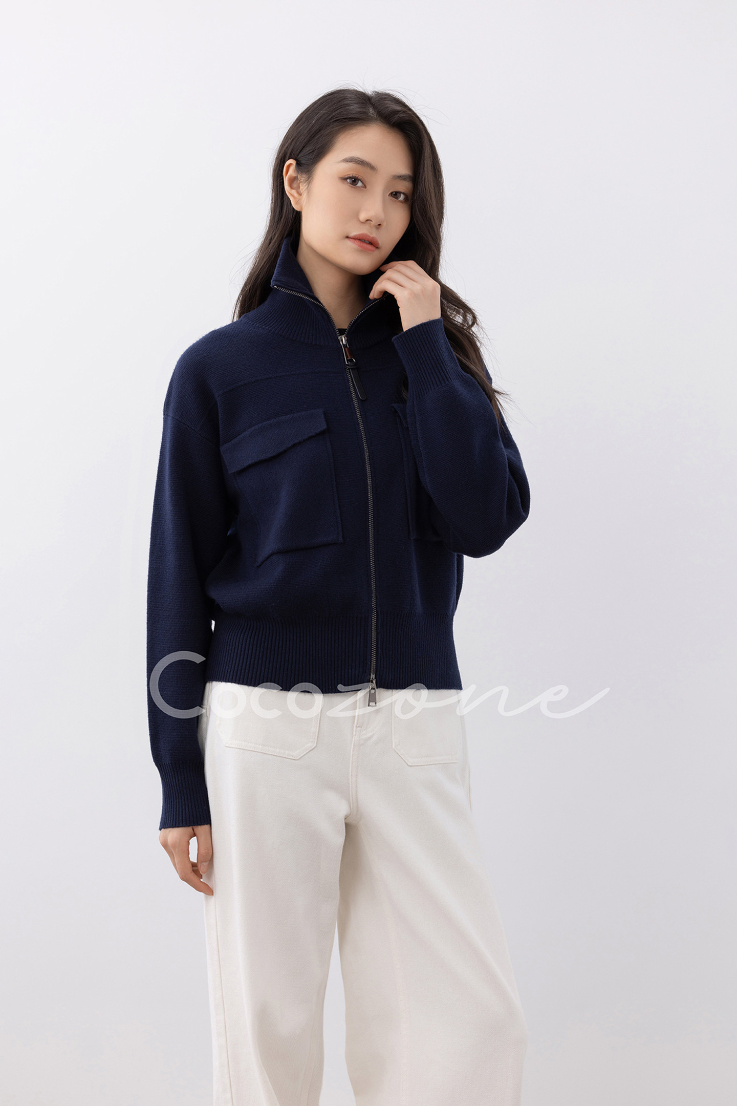 COCO ZONE 刘一一 立领拉链羊毛针织开衫时尚 CD2A1905
