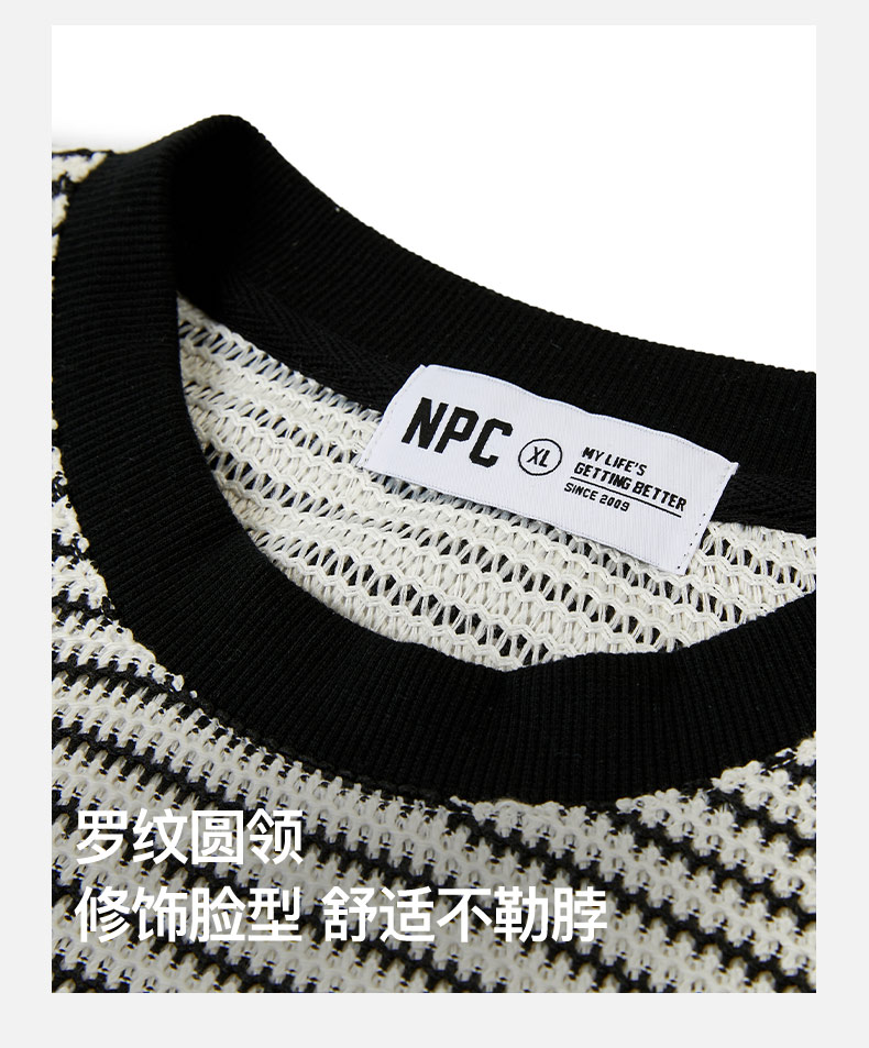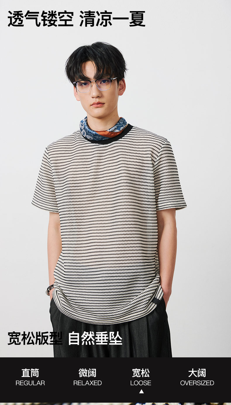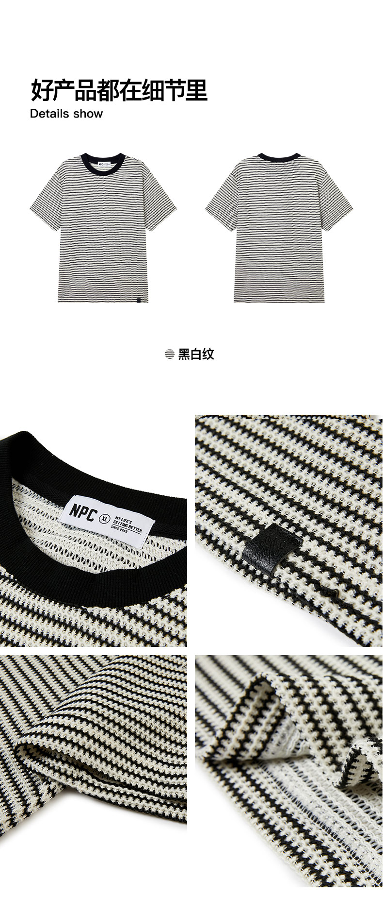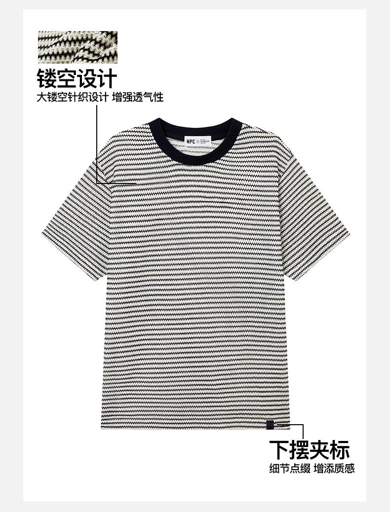 NPC潮牌撞色条纹镂空圆领百搭T恤男微弹落肩廓形舒适宽松NP52TE09