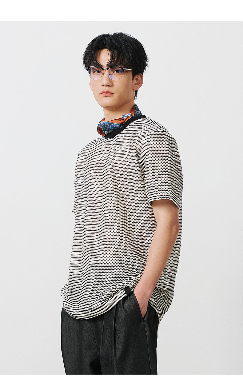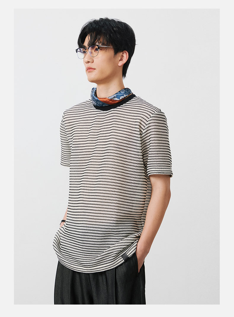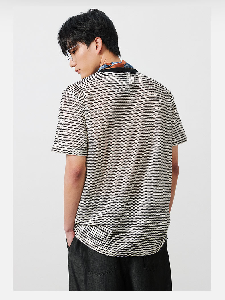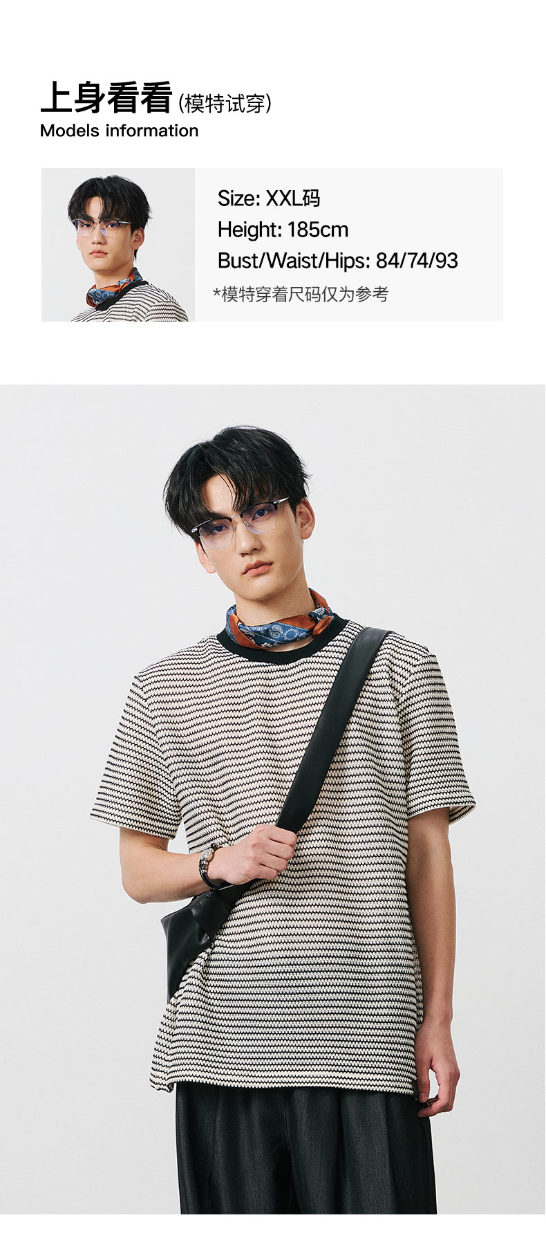 NPC潮牌撞色条纹镂空圆领百搭T恤男微弹落肩廓形舒适宽松NP52TE09