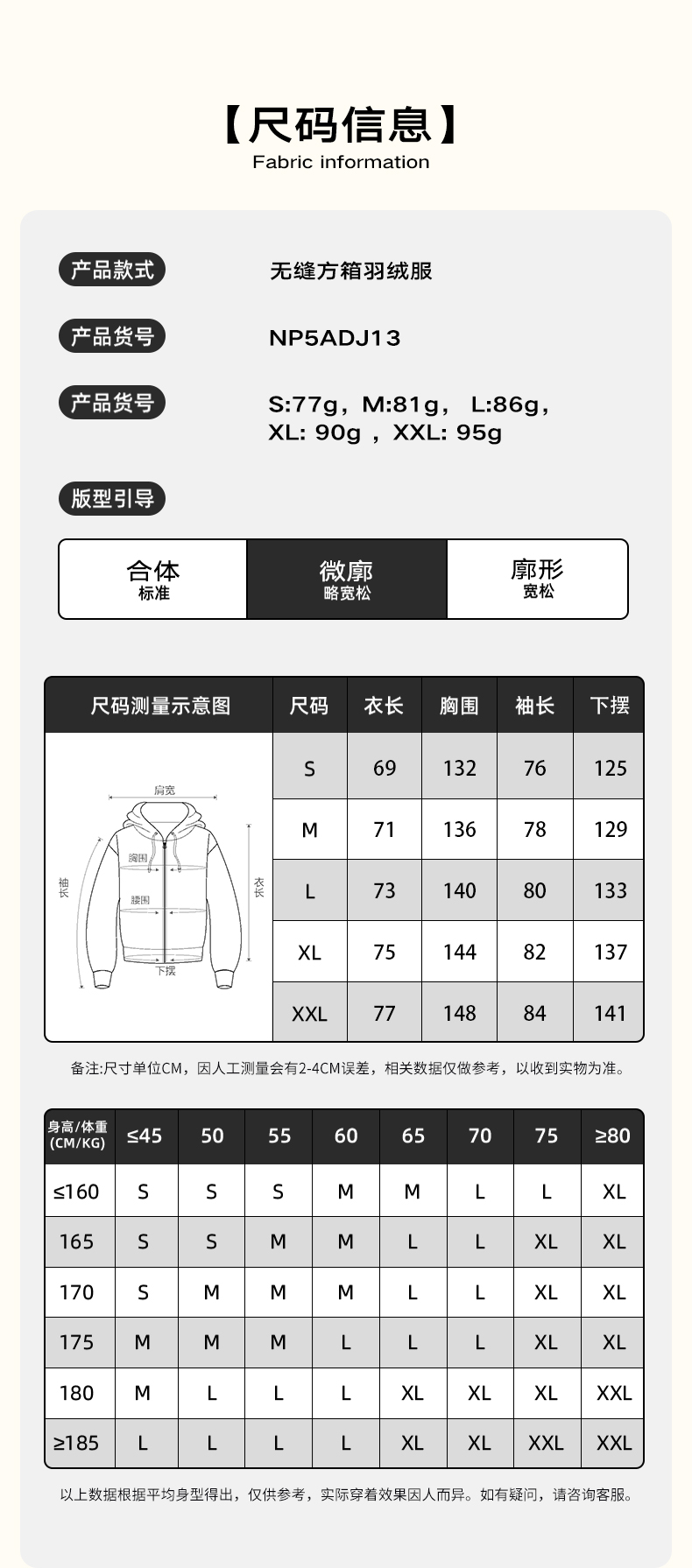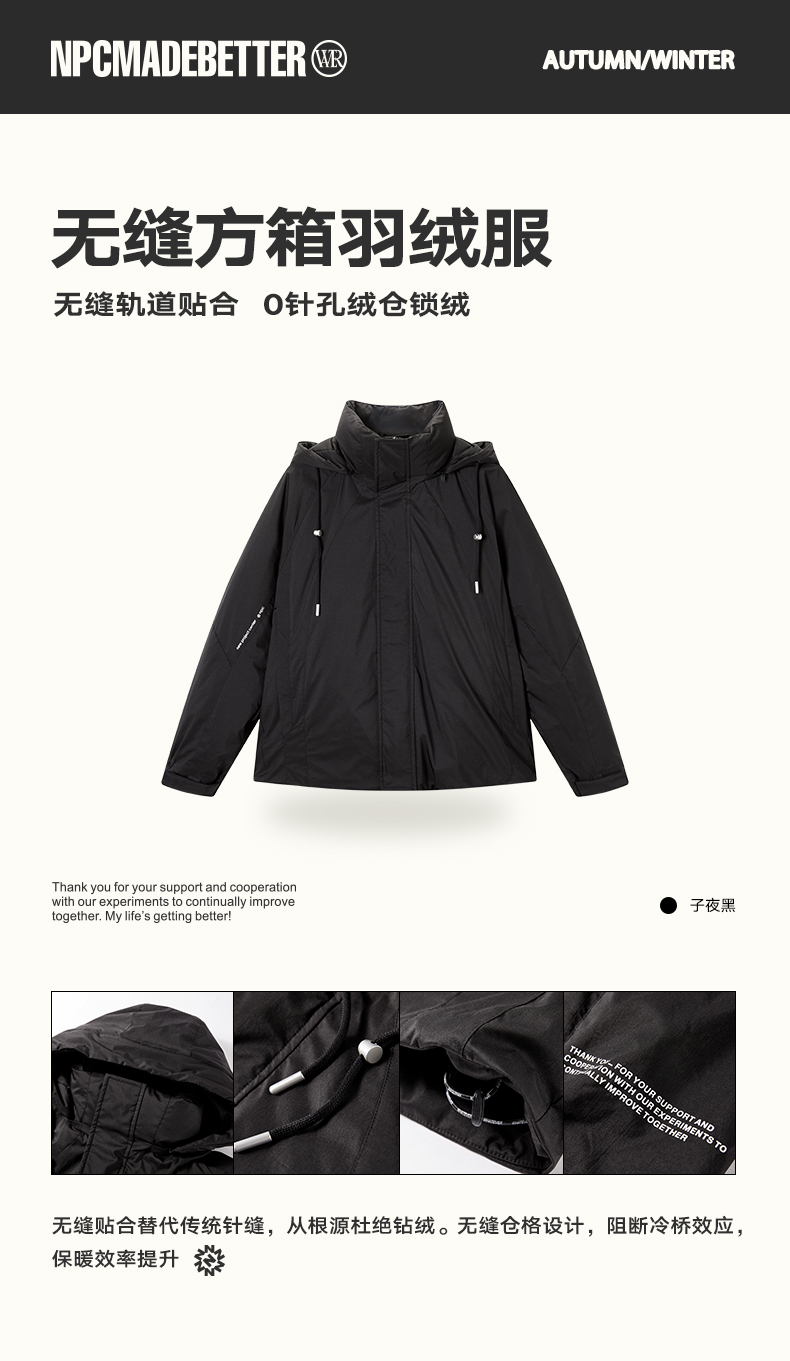 NPC潮牌【三防】90%鸭绒连帽羽绒服无缝方箱羽绒服保暖冬季NP5ADJ13