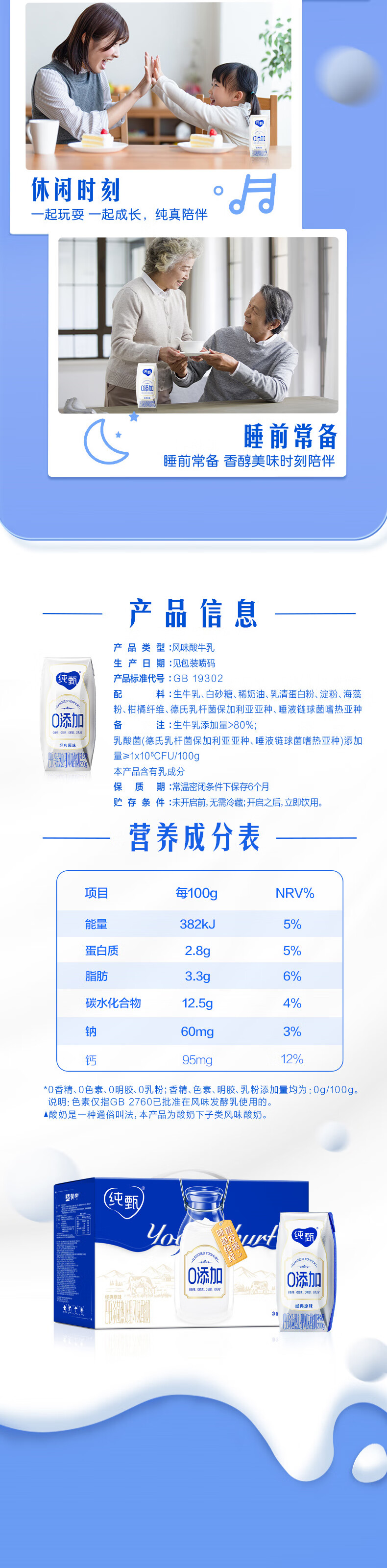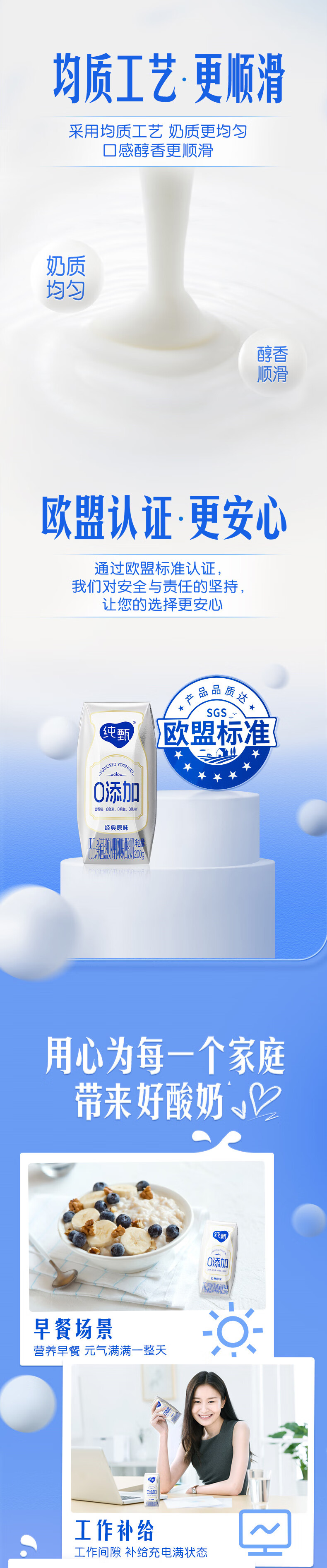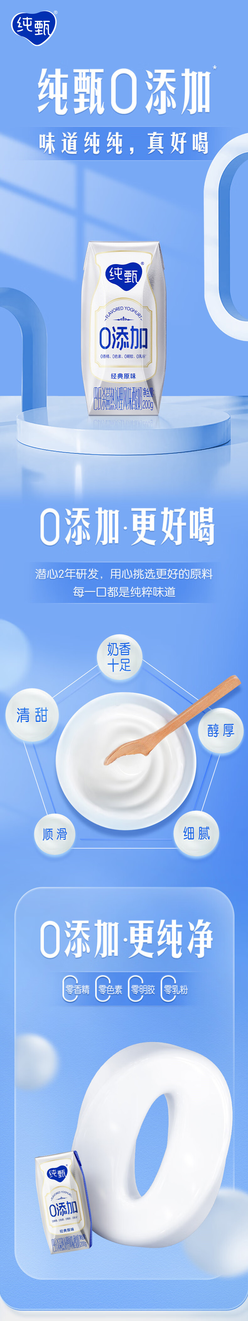 纯甄0添加巴氏杀菌热处理原味风味酸奶利乐钻200g×10包