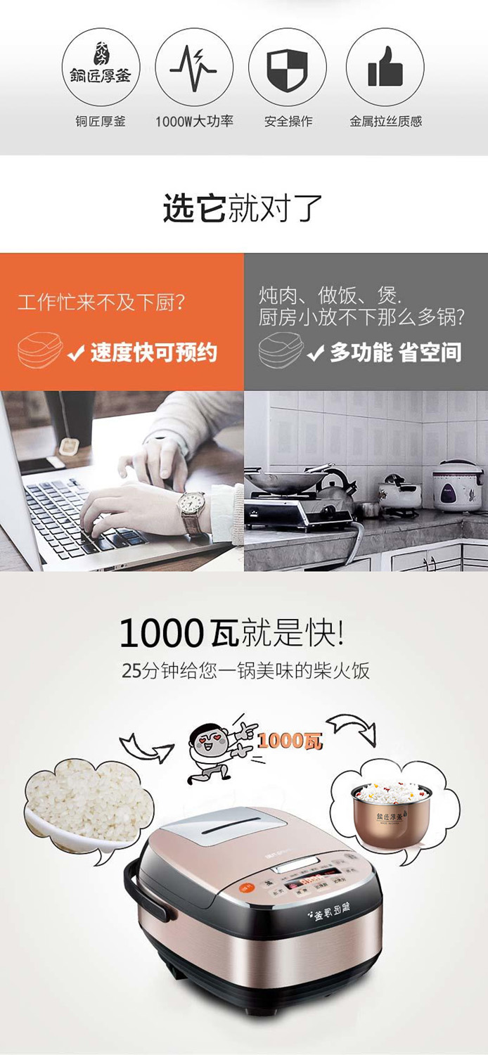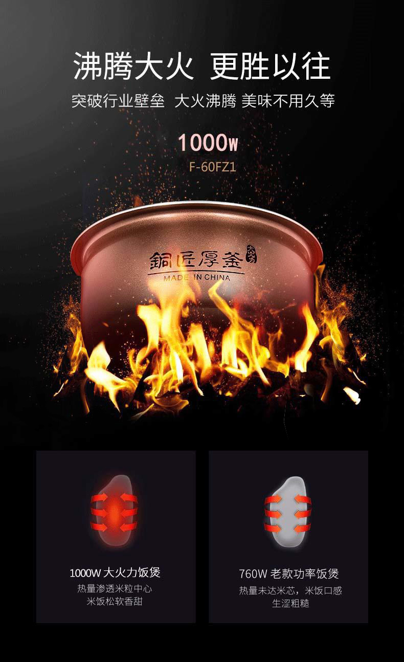 【6L升大容量】Joyoung/九阳F-60FZ1智能电饭煲铜匠厚釜1000W大火力电饭锅
