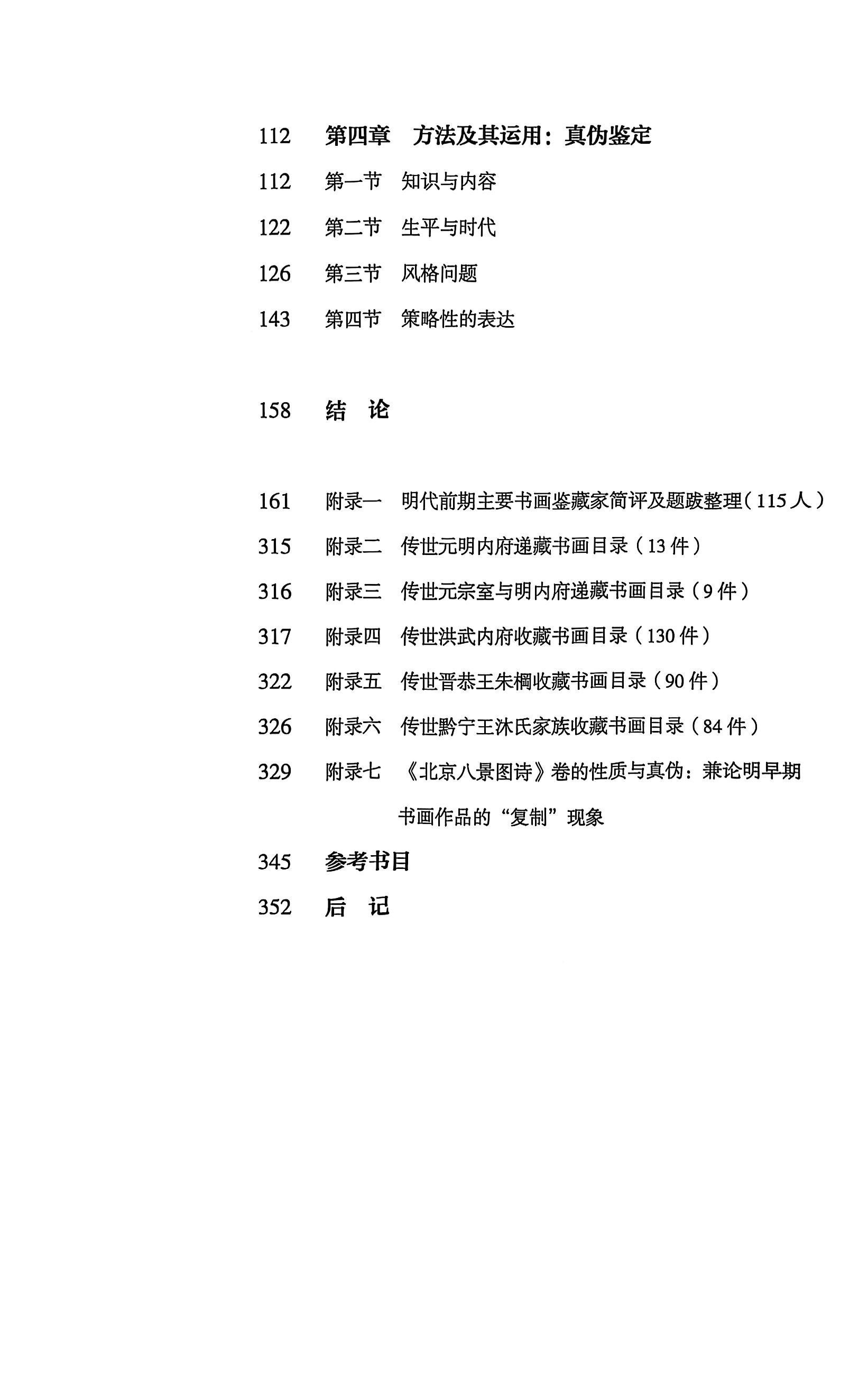 《明代前期书画鉴藏研究》以前人所忽视的明前期鉴藏史为角度,尤其是从一些并不以此著称的,但实际上同样频繁参与书画鉴藏活动的人群,如朱元璋、朱标、姚广孝、刘基、胡广、解缙、杨士奇、杨溥、来复、良琦、张宇初等。从存世宋元书画作品中,整理出了明代前期一百余位书画鉴藏家的存世题跋,同时遍览明代鉴藏家文集、著作以及相关书画著录书籍,试图勾画出明代前期鉴藏活动的基本轮廓。针对“明代前期的书画题跋”,尤其是存世题跋,进行梳理、辨别、整理,在做好扎实基础工作之后,进一步对此时鉴藏家寓目作品、鉴定方法、鉴赏观点进行比较全面的宏观总结,并对鉴藏活动的场所、环境、功能与意义,以及藏品的流通与交易等问题形成有据的判断。