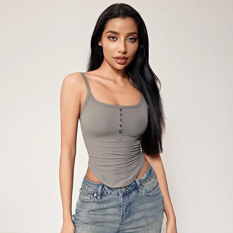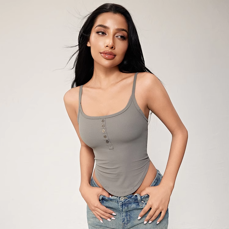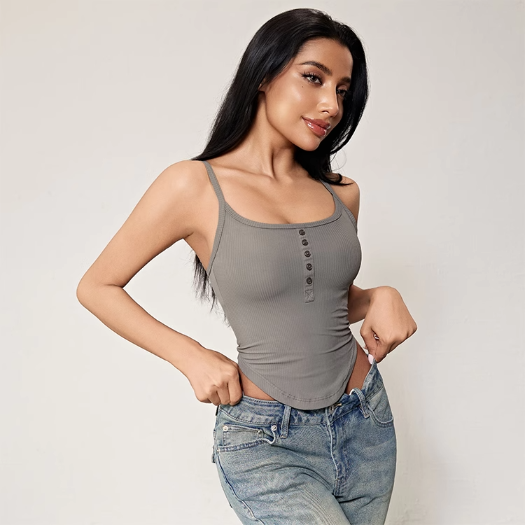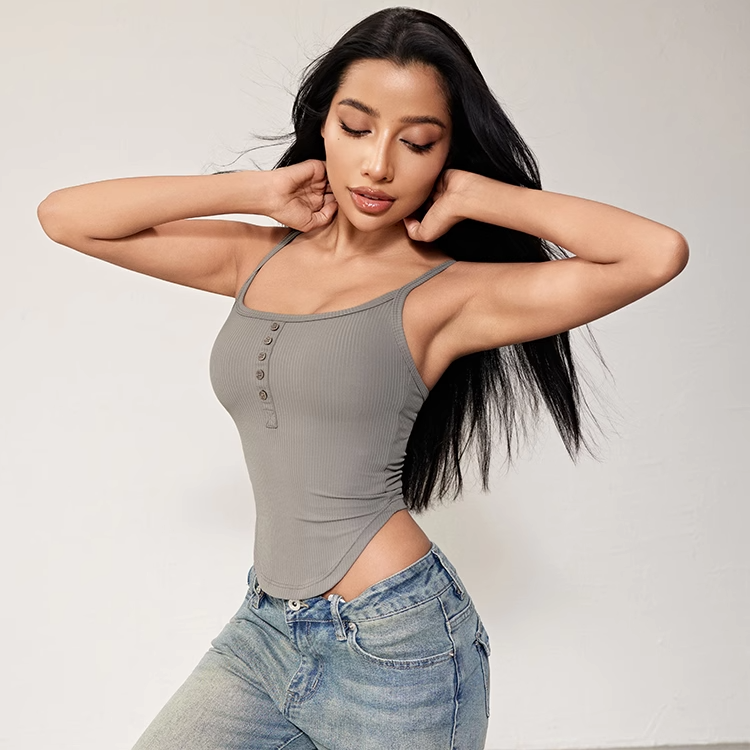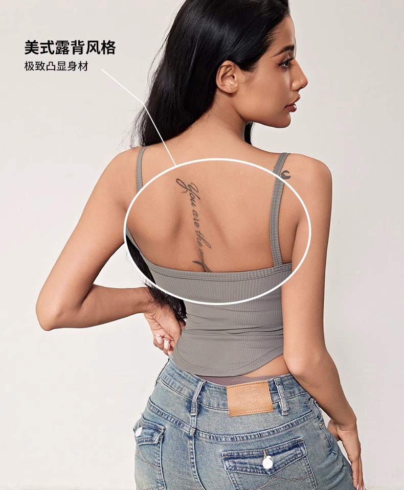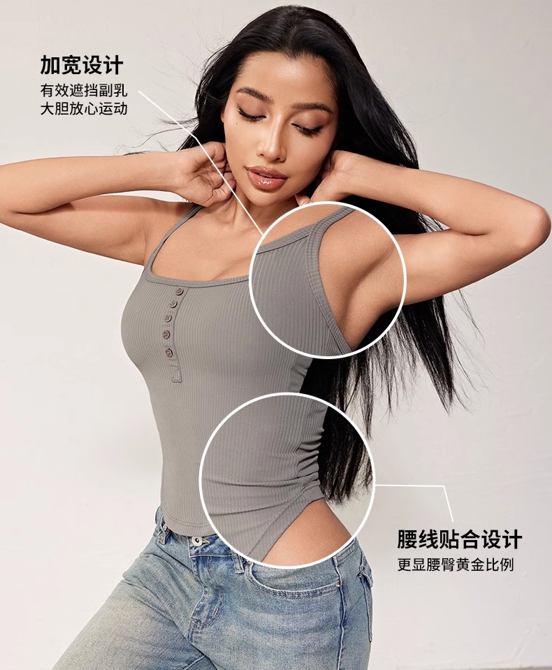 跃牌【周游世界系列】2024秋冬新款螺纹细肩带固定杯运动内衣纽扣U领瑜伽内衣BR1571