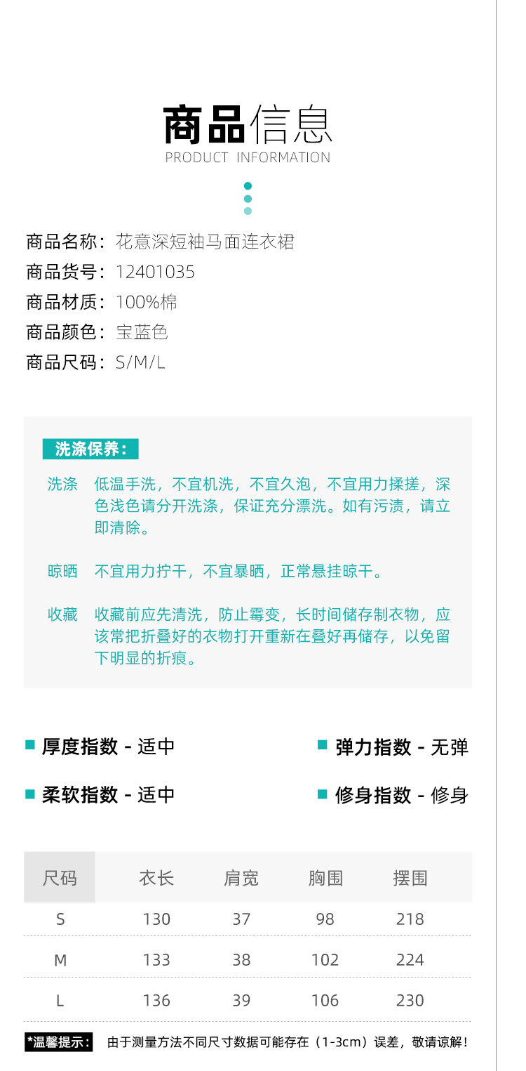 蓝色超好看 | 花意深短袖清马面连衣裙 | 现货加急发