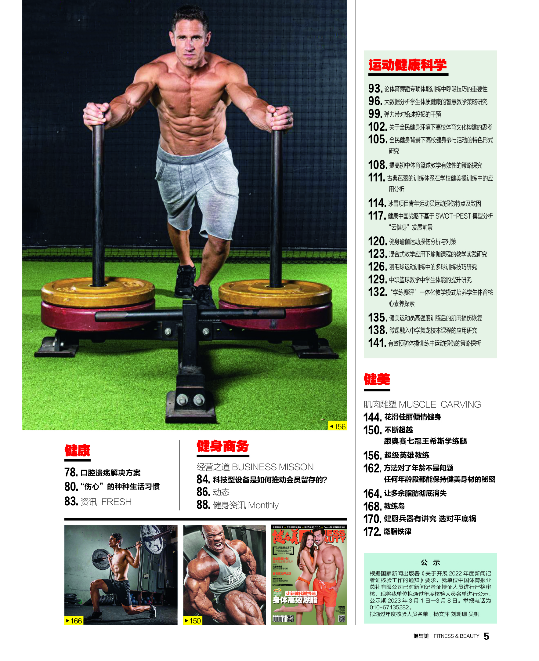 1.《健与美》月刊于每月底新刊上市,2023年单期杂志零售价格为30元,全国各大报刊亭有售。邮局可订阅。
