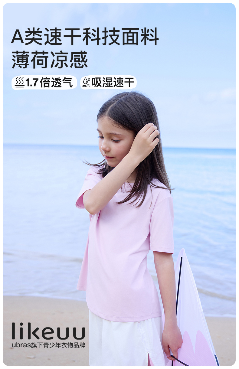likeuu儿童T恤短袖男女中大童速干打底衫凉感吸汗透气上衣亲子款LKC251011
