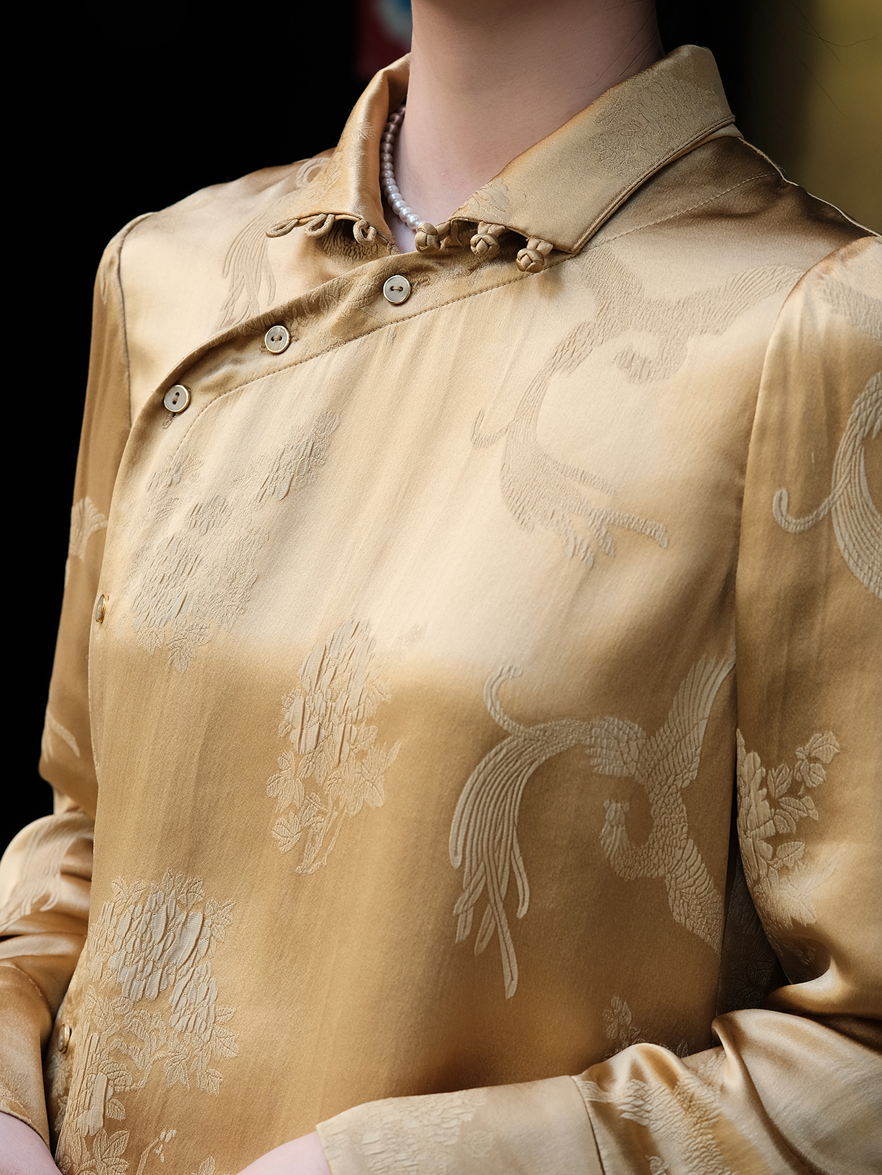 盛唐牡丹 |真丝提花梅兰竹菊偏襟上衣