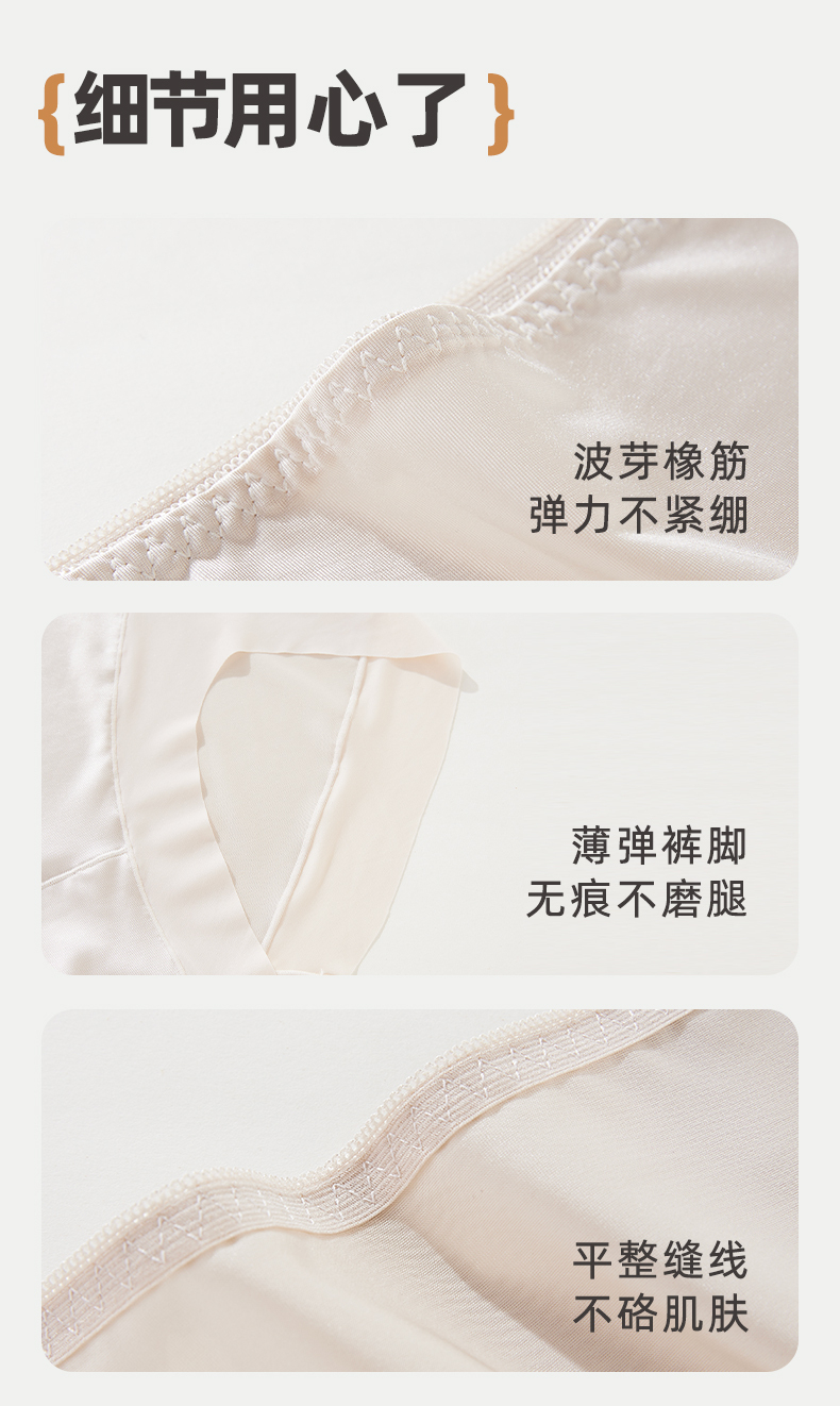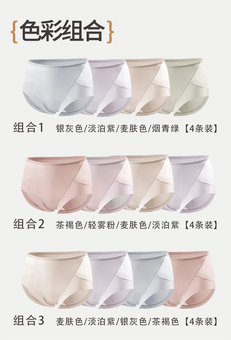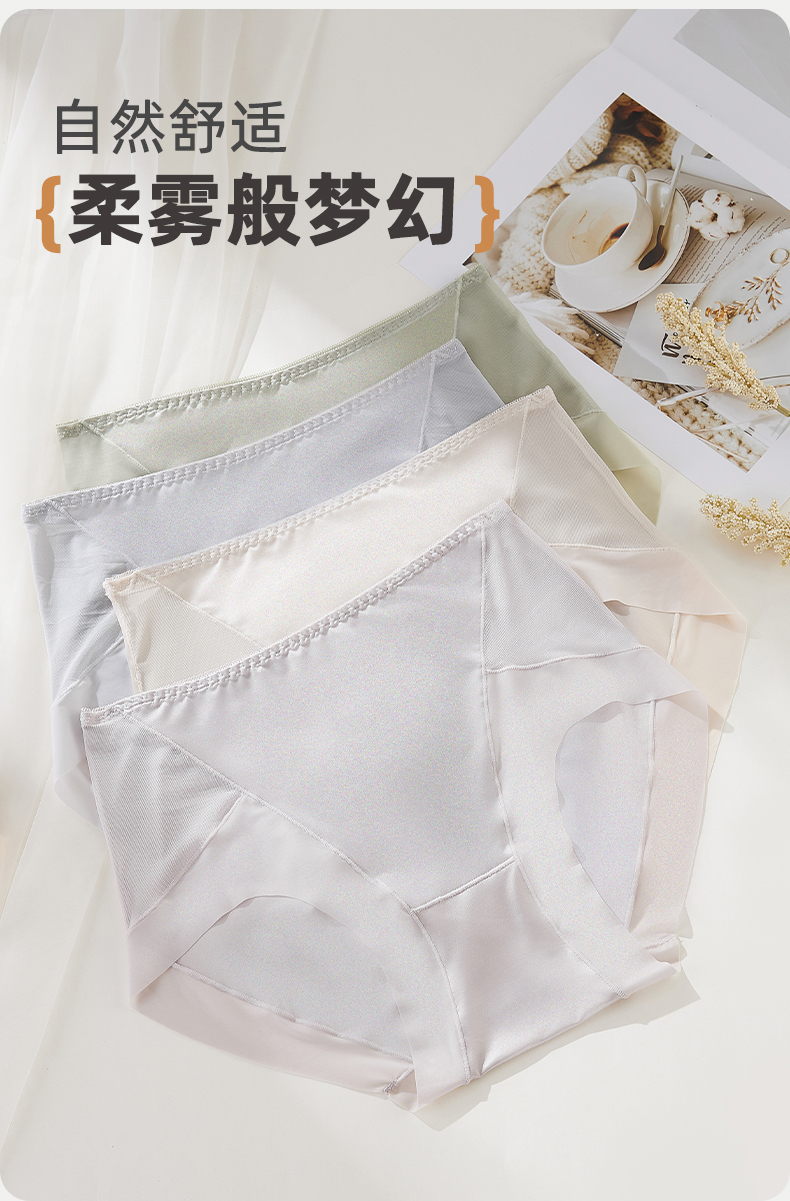 【4条装】雅黛俪女士内裤缎面网纱性感无痕三角裤10A抑菌裆底裤头