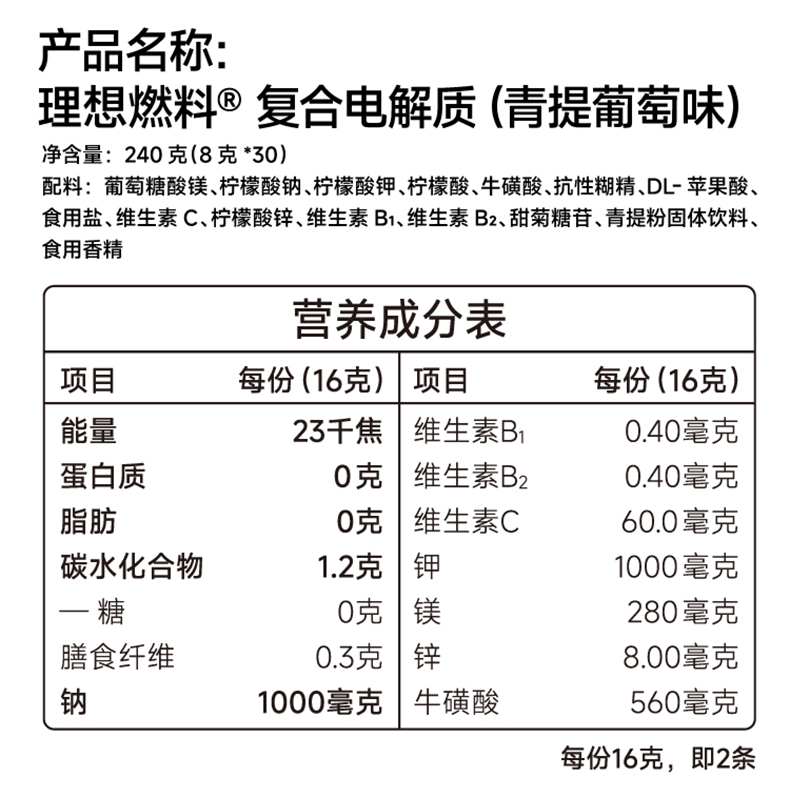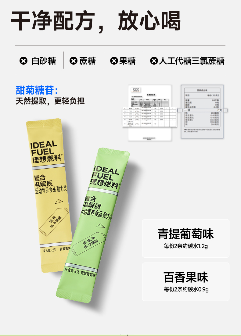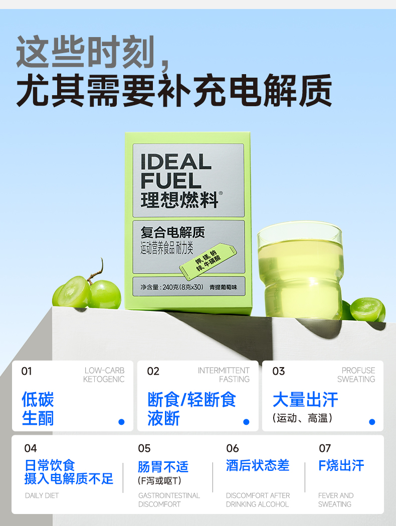 理想燃料 | 复合电解质30条/盒 原味青提葡萄味百香果味