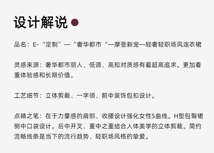 E-“定制”——“奢华都市”——摩登新宠——轻奢轻职场风连衣裙 2401169
