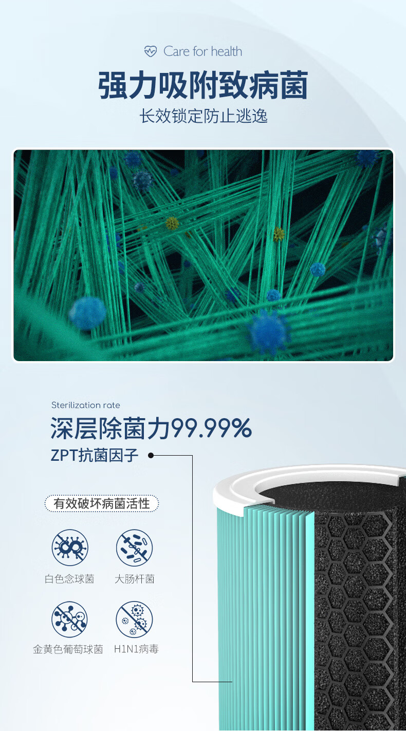 ◆ 99.9%去除3菌1病毒添加ZPT抗菌因子,