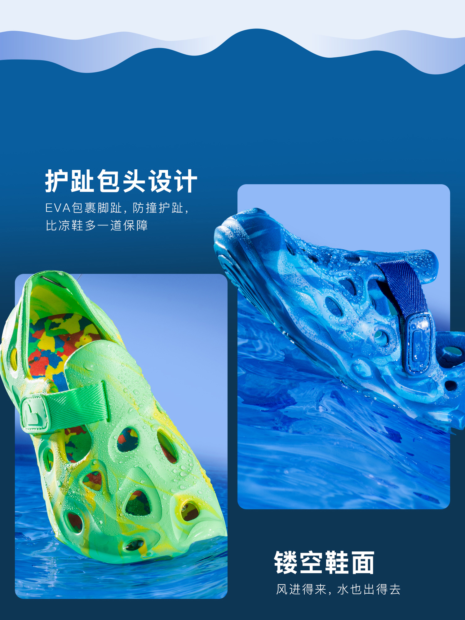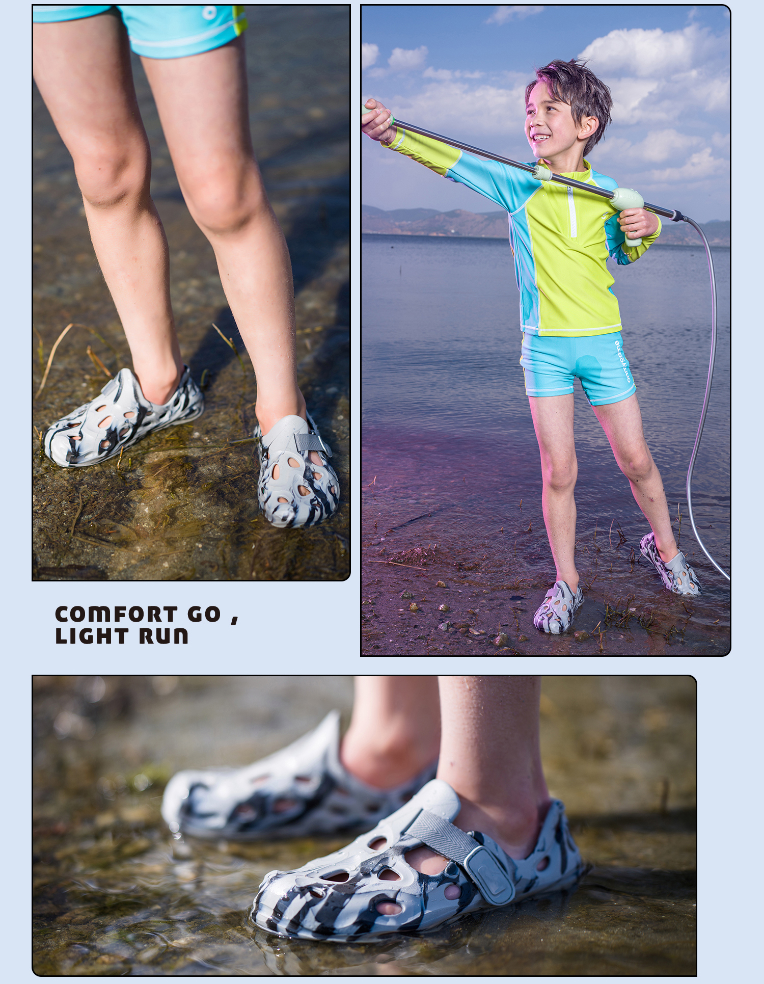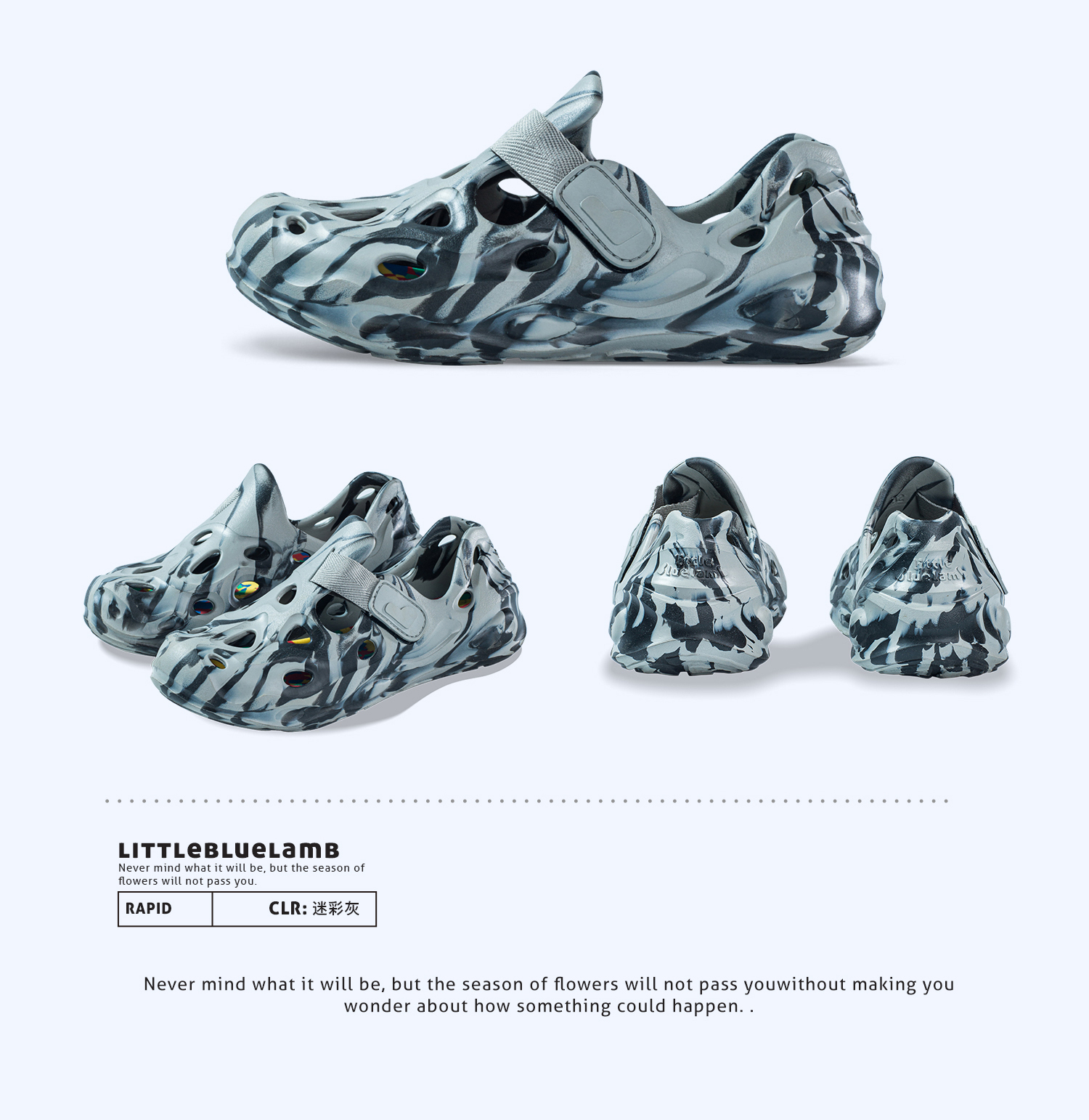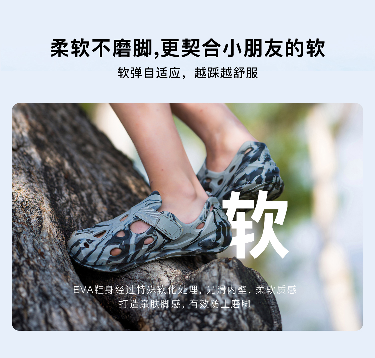 【30-38码】小蓝羊25夏季亲子鞋透气沙滩鞋涉水洞洞鞋迷彩凉鞋-小船长迷彩洞洞鞋,海边踩水必备