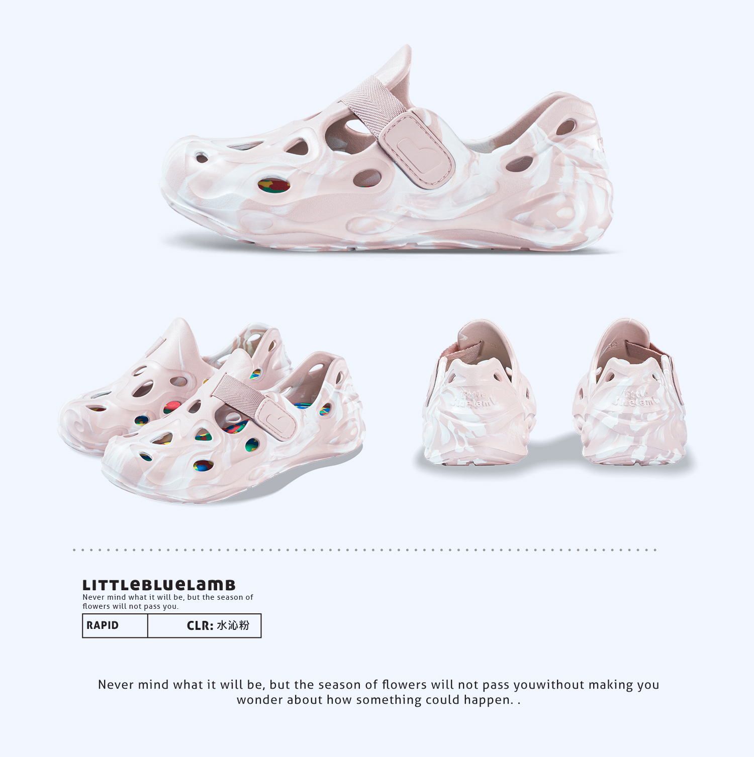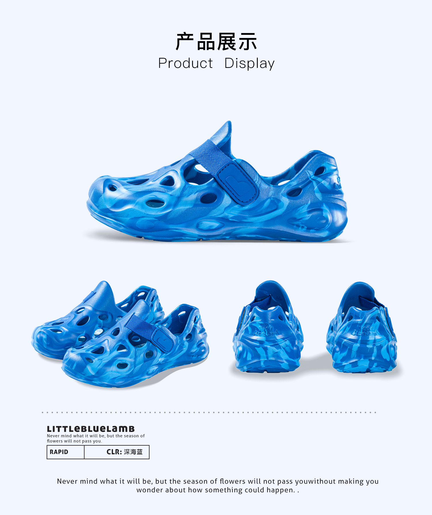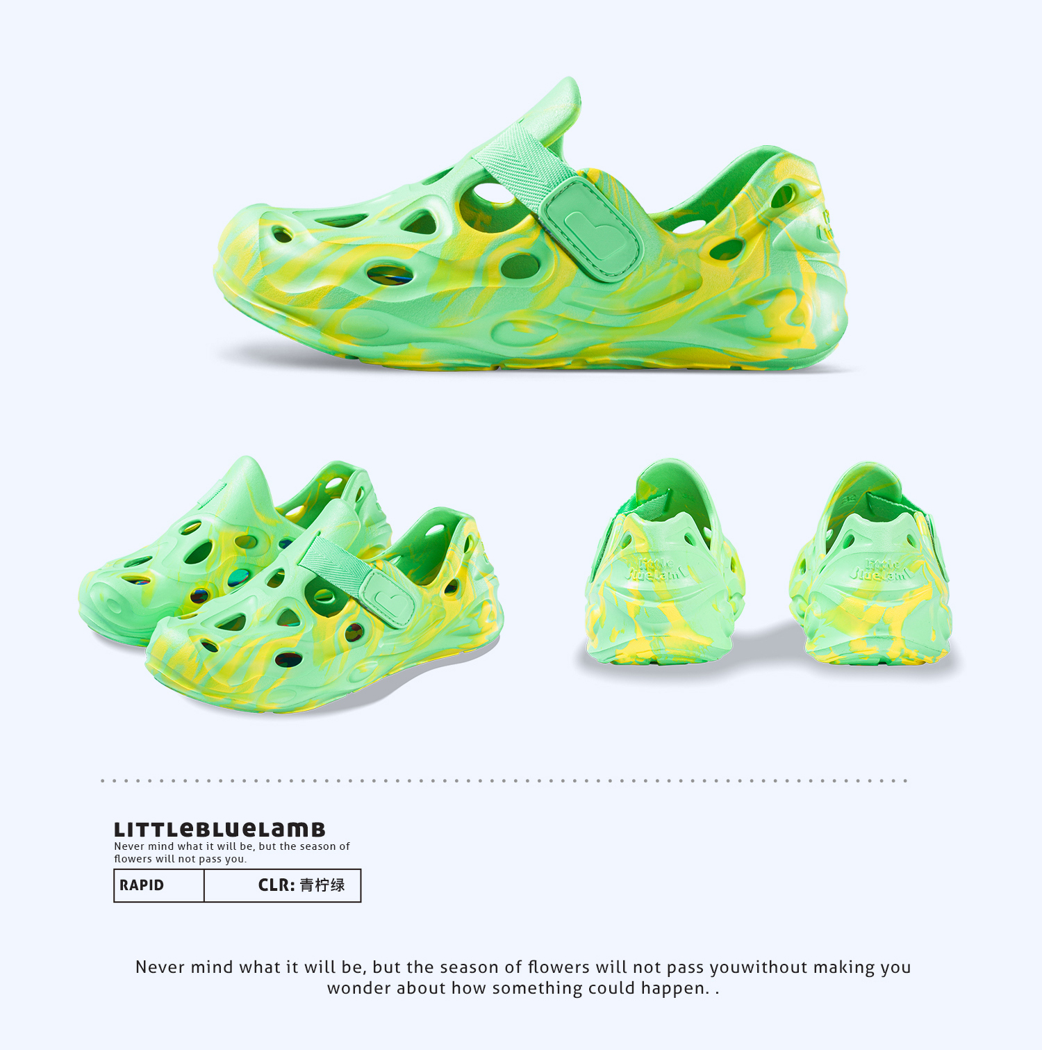 【30-38码】小蓝羊25夏季亲子鞋透气沙滩鞋涉水洞洞鞋迷彩凉鞋-小船长迷彩洞洞鞋,海边踩水必备