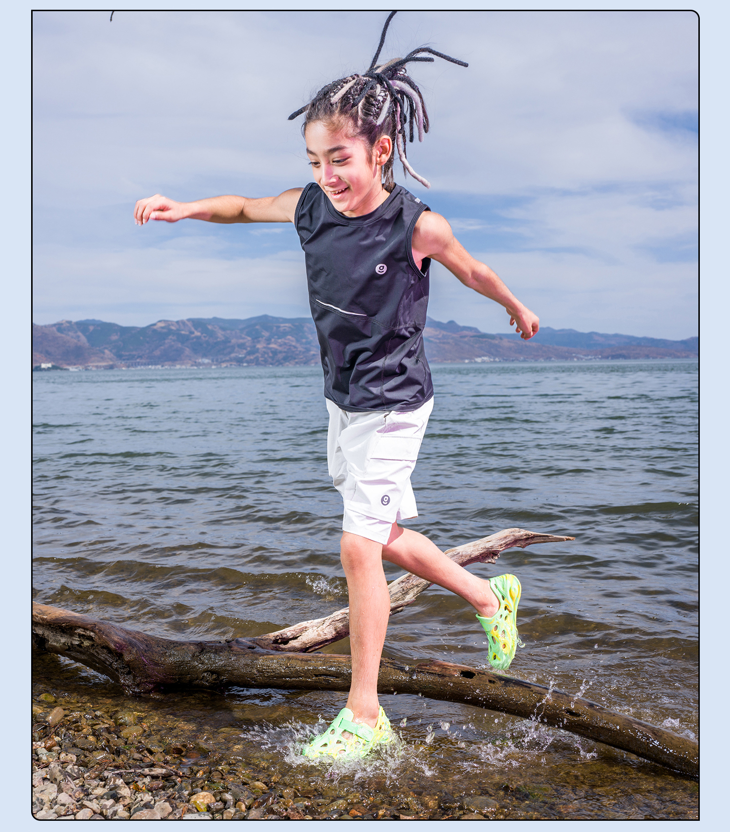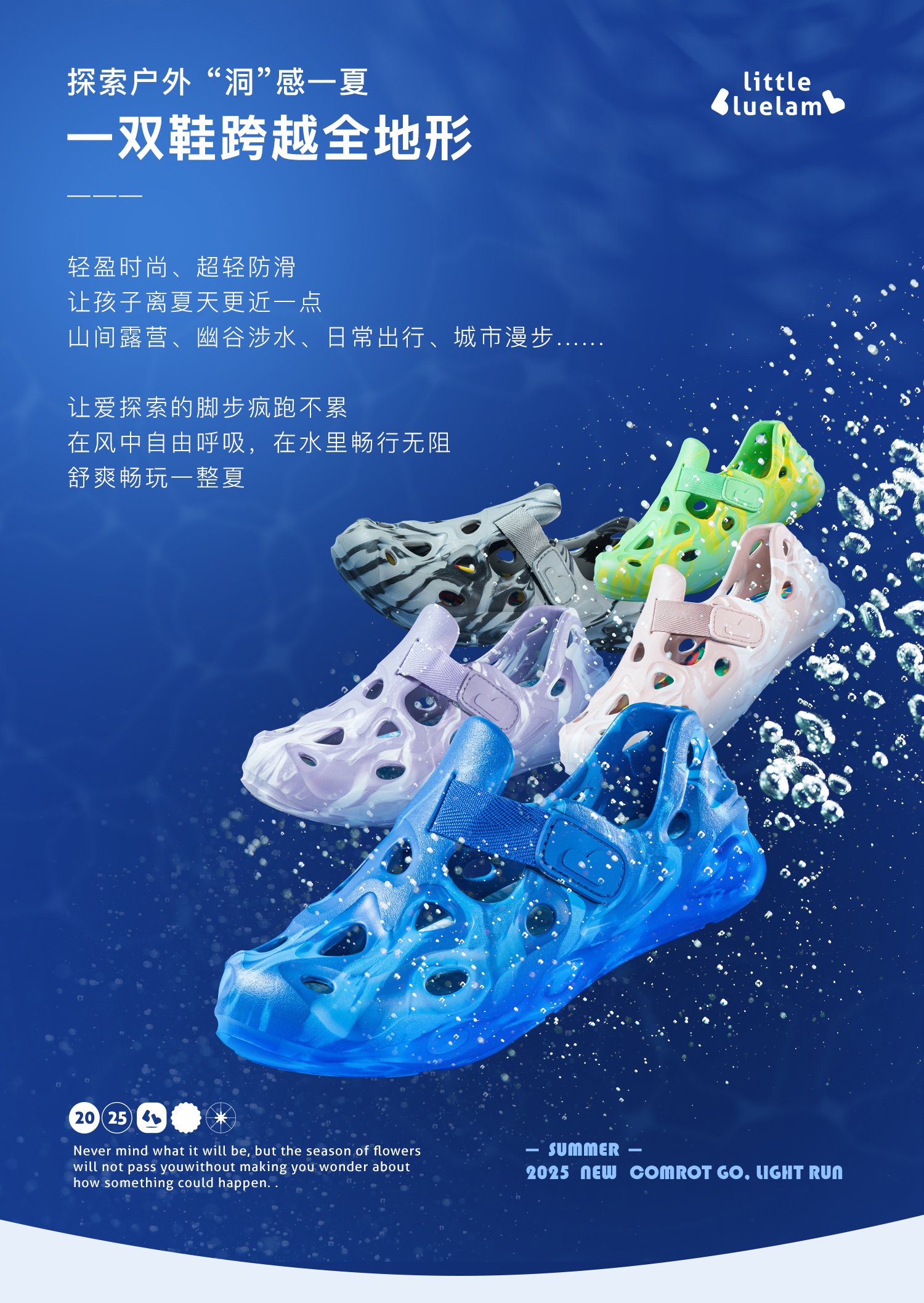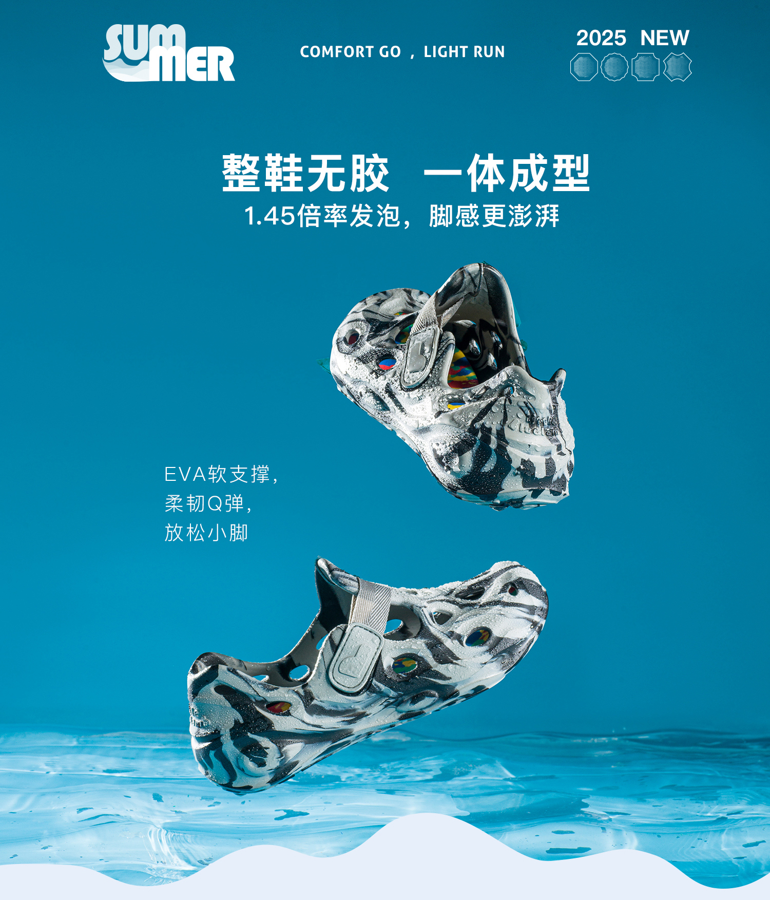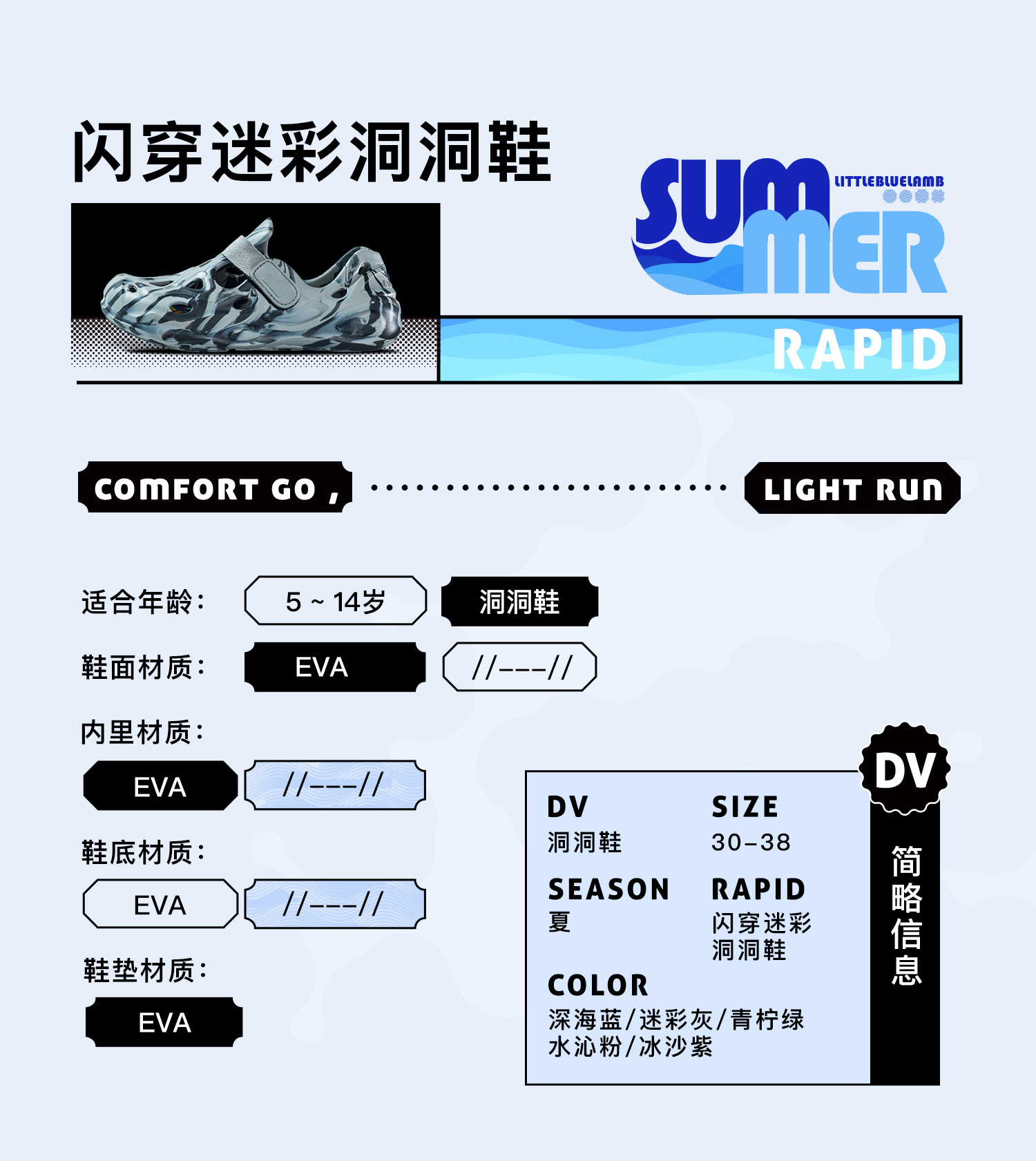 【30-38码】小蓝羊25夏季亲子鞋透气沙滩鞋涉水洞洞鞋迷彩凉鞋-小船长迷彩洞洞鞋,海边踩水必备
