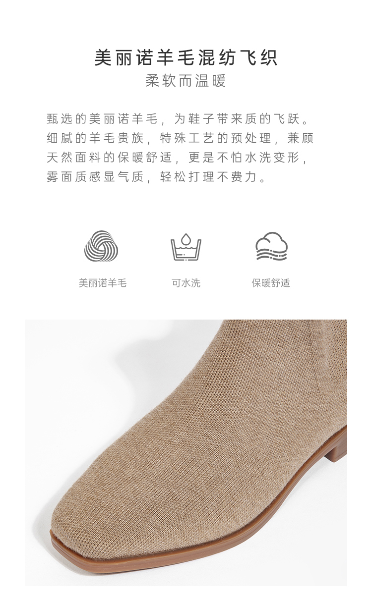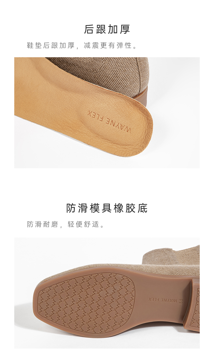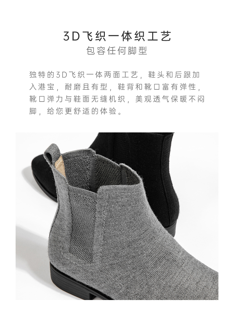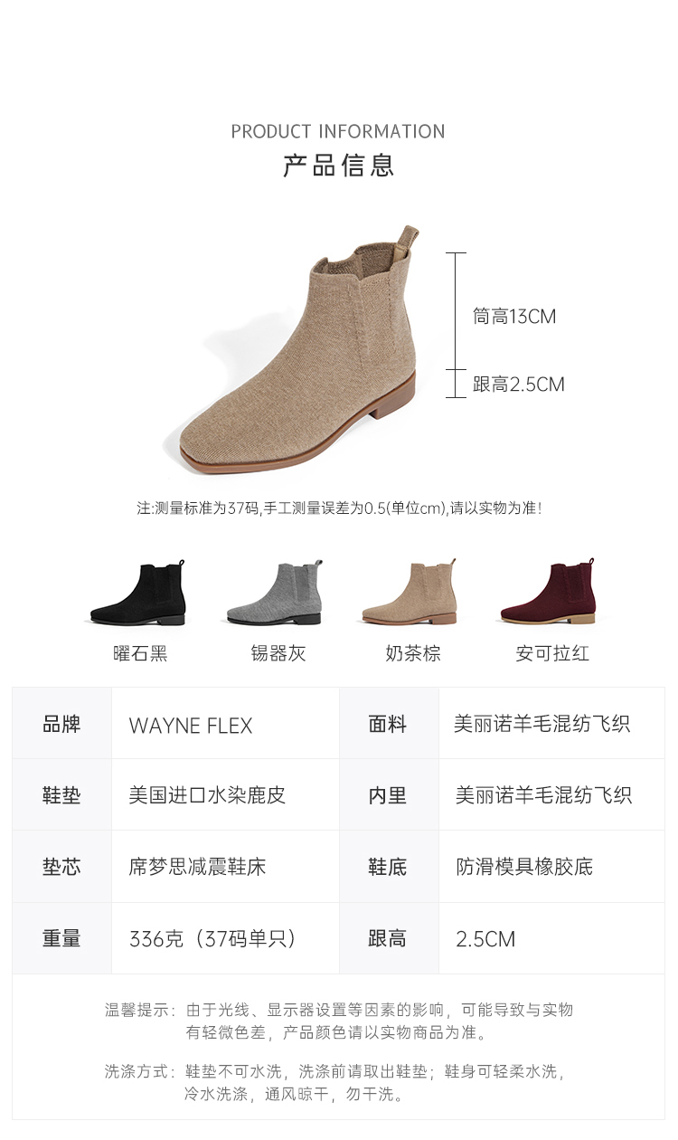 【轻便舒适 表面防泼水】WayneFlex韦恩 女士羊毛混纺飞织切尔西平底鞋WF6270(工作日72小时发货)