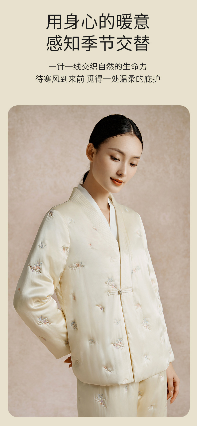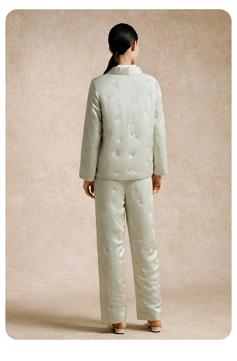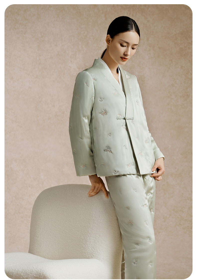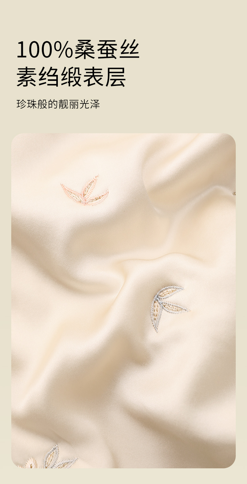 100%桑蚕丝夹棉衣裤套新中式保暖睡衣女真丝缎面长袖家居服金三塔 YSFED201