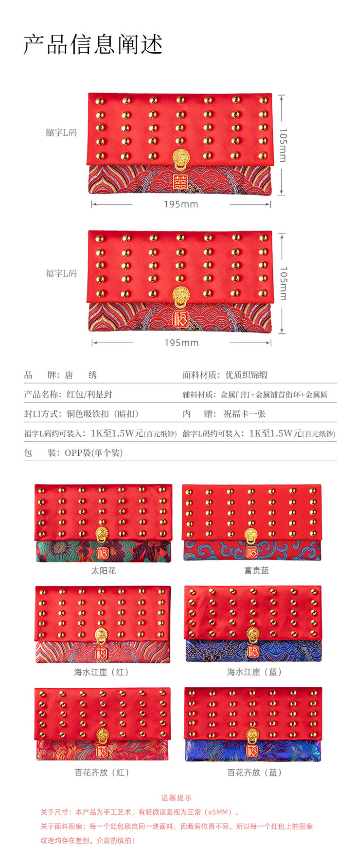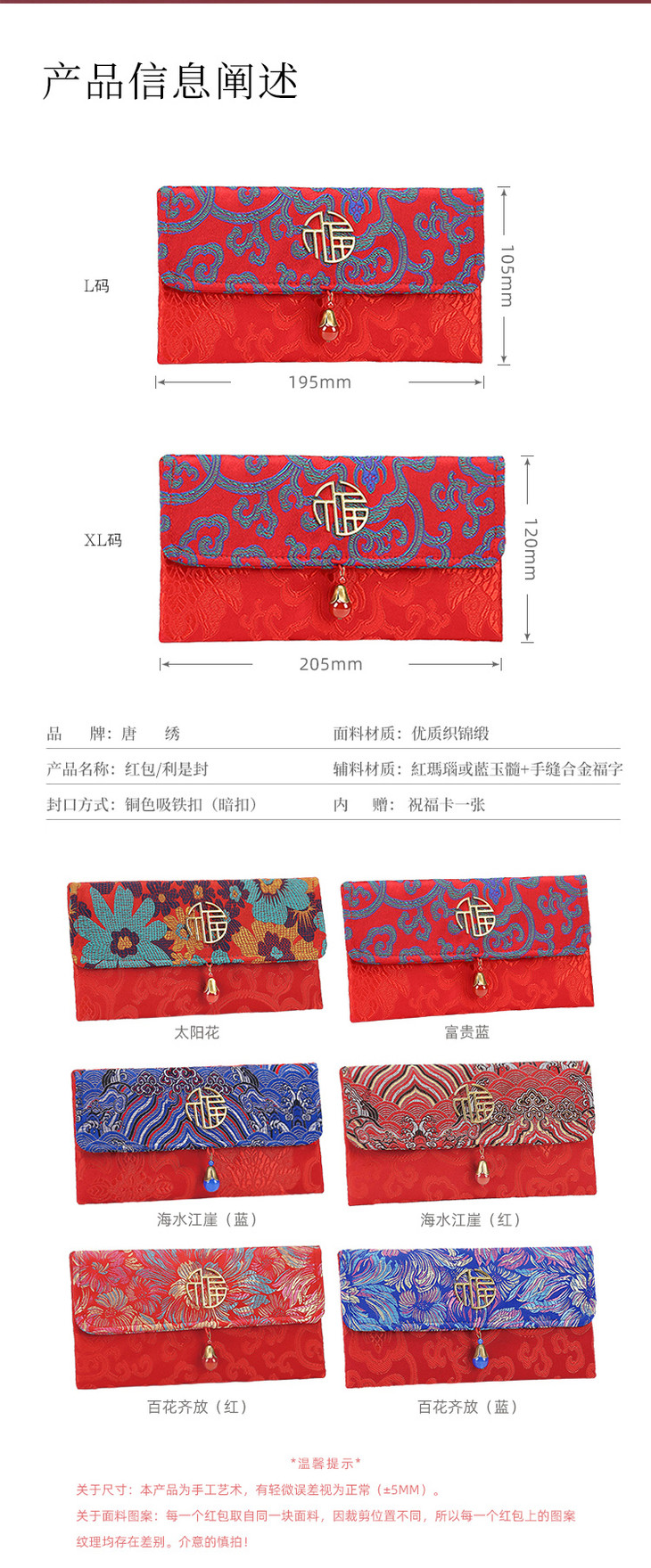 【为思礼 年礼】2026新年春节 祥瑞红包 织锦缎布艺刺绣 利红包 宫墙红包 青铜磁扣 大气中国风 改口包边 过年压岁包