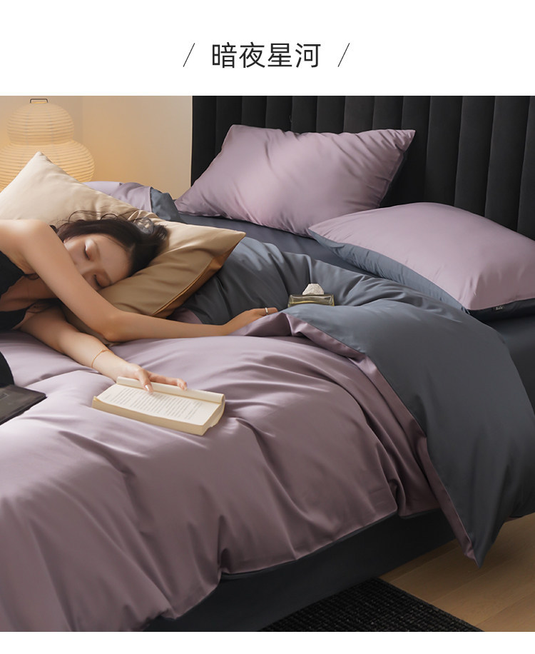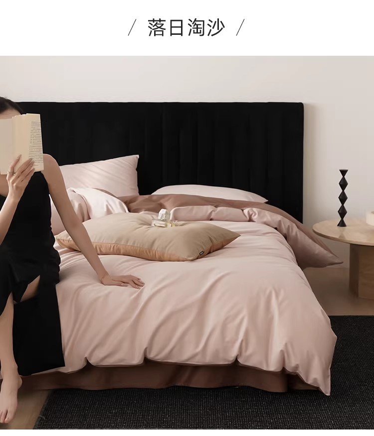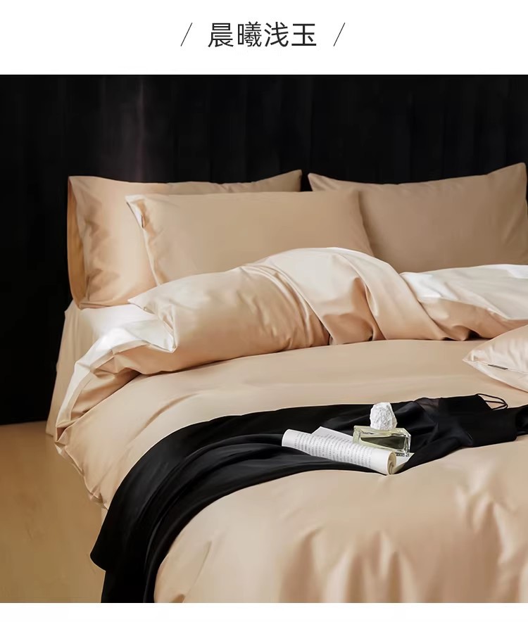 简约拼色~现代风100S长绒棉全棉四件套 百搭纯色宿舍三件套双人床全棉床单床笠