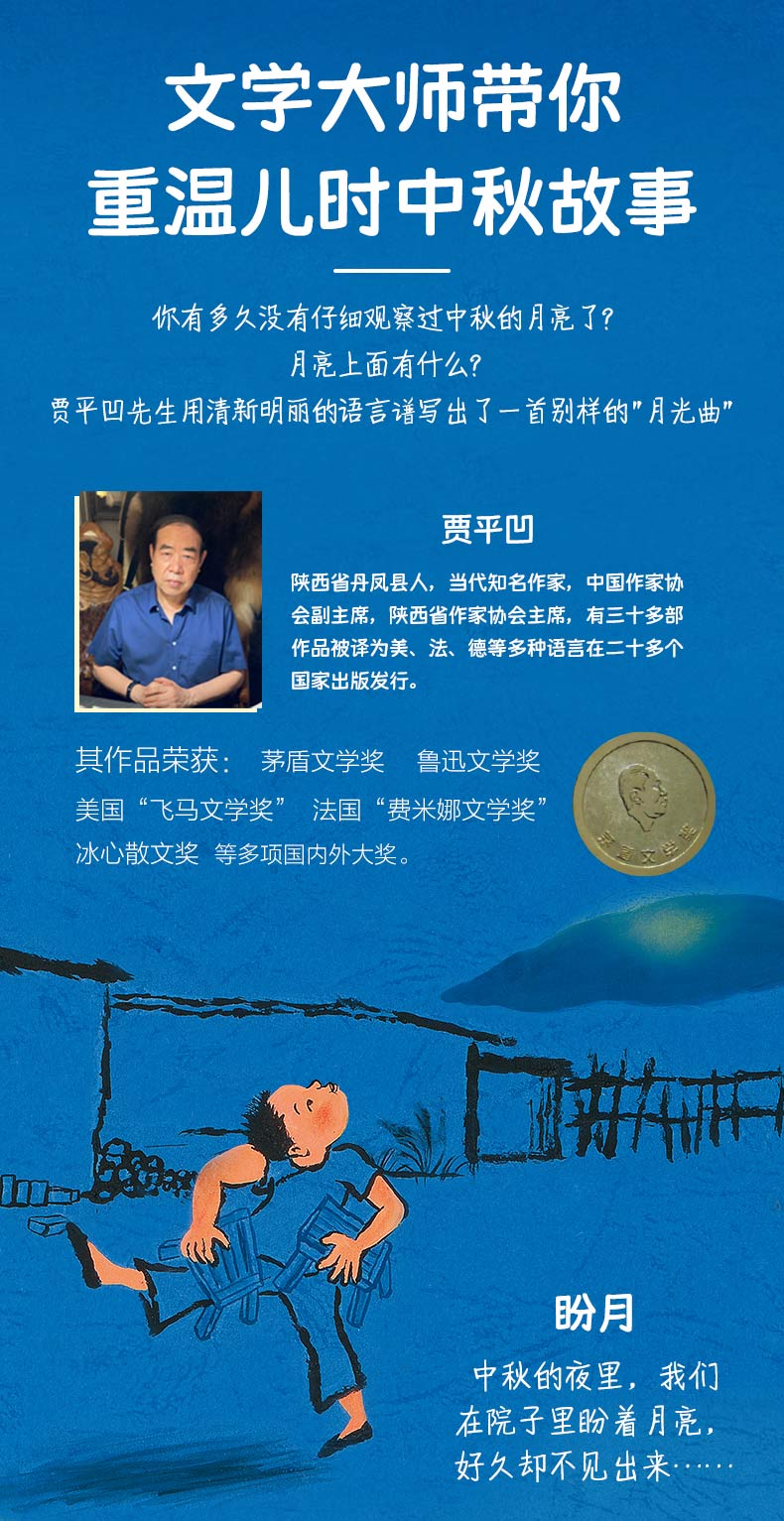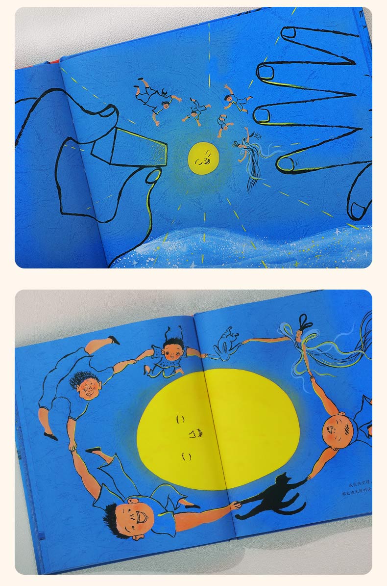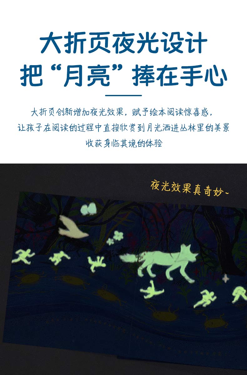 对尚且年幼、涉世未深的孩子来说,中秋节最大的诱惑莫过于吃月饼和玩游戏。在中秋节;欣赏自然美景、期盼亲人团圆的意义,对孩子来说并不是一个特别清晰的情感概念。《月迹》这本书,则以绘本的形式,记录下三个小孩在中秋节的夜里如何追寻月亮,欣赏月亮,为月亮的美所感动的故事。故事选取;我一个七八岁的小男孩作为第一视角来讲述中秋夜里我们的所见所闻。无论是听奶奶讲故事,还是盼月亮,寻月亮,对月亮产生无限遐想的过程,都无一不透露出一个孩子对月亮的认识、理解和喜爱。通过这样一个以孩子为主角的故事,让每一位读到这本绘本的小读者都能与主角一起进入中秋之夜,切身地感受到月亮的美,自然万物之美,从而激发对万事万物的怜惜之情,对未来人生的无限向往。