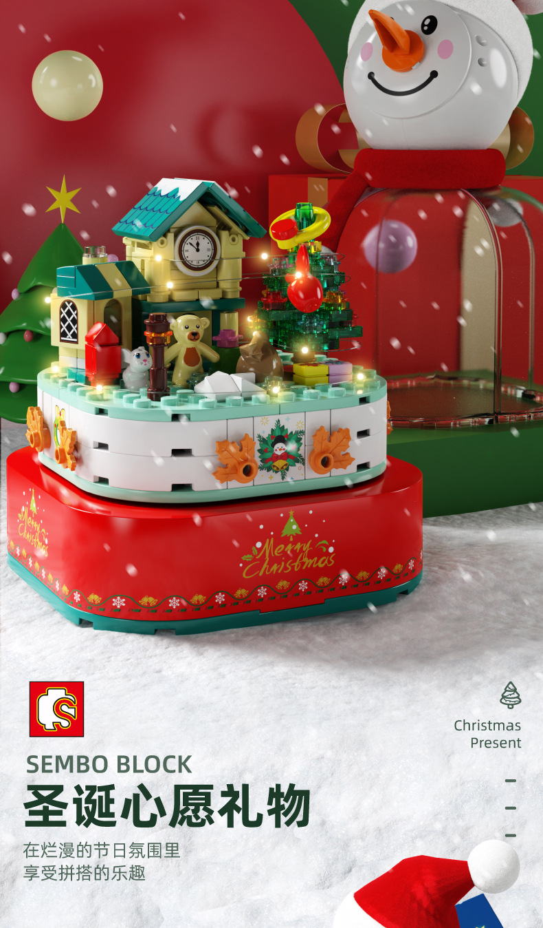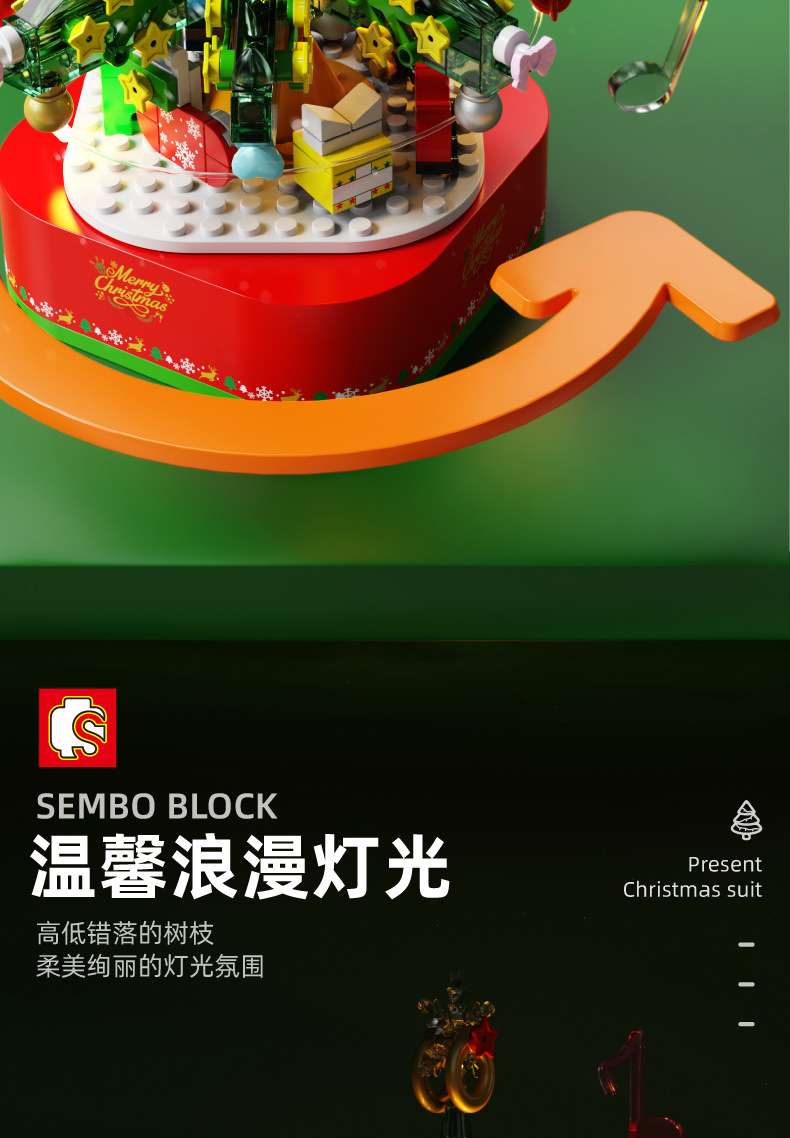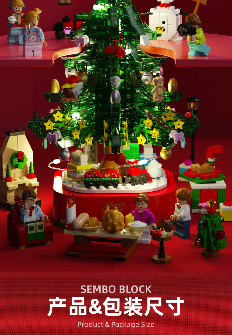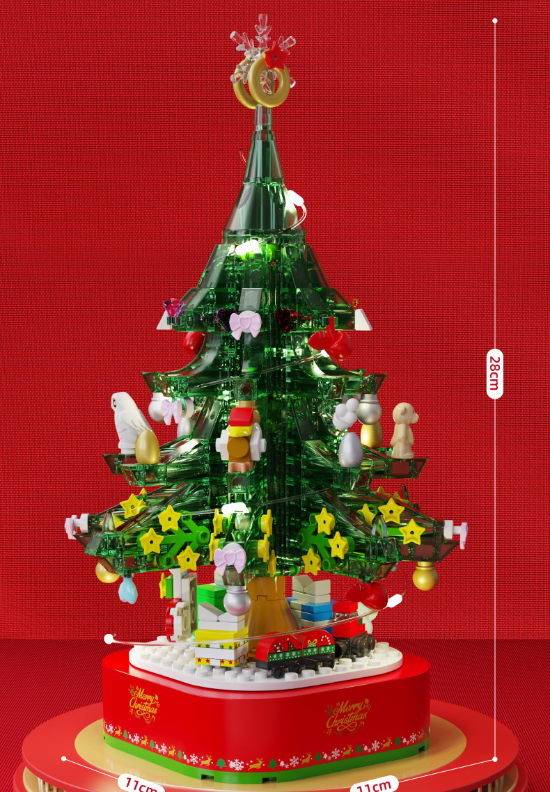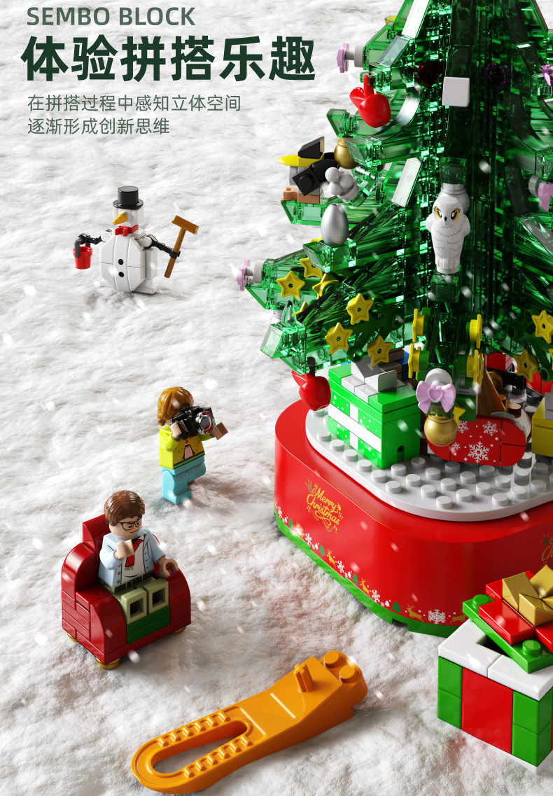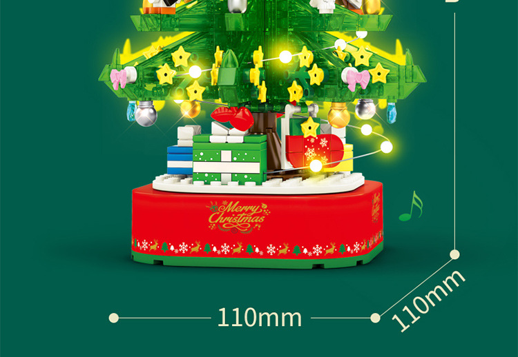【圣诞礼品】森宝积木 音乐灯光 音乐盒圣诞树 旋转小屋拼装积木儿童玩具节日礼物 带发光灯源