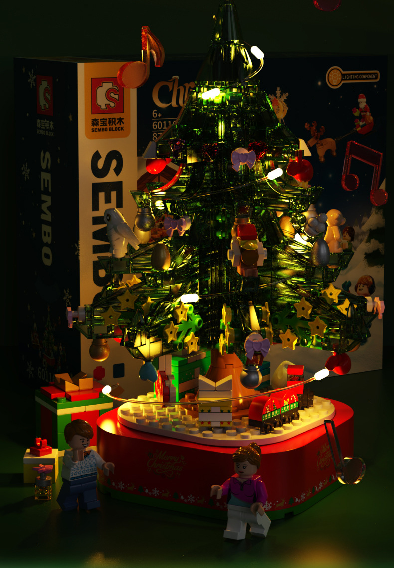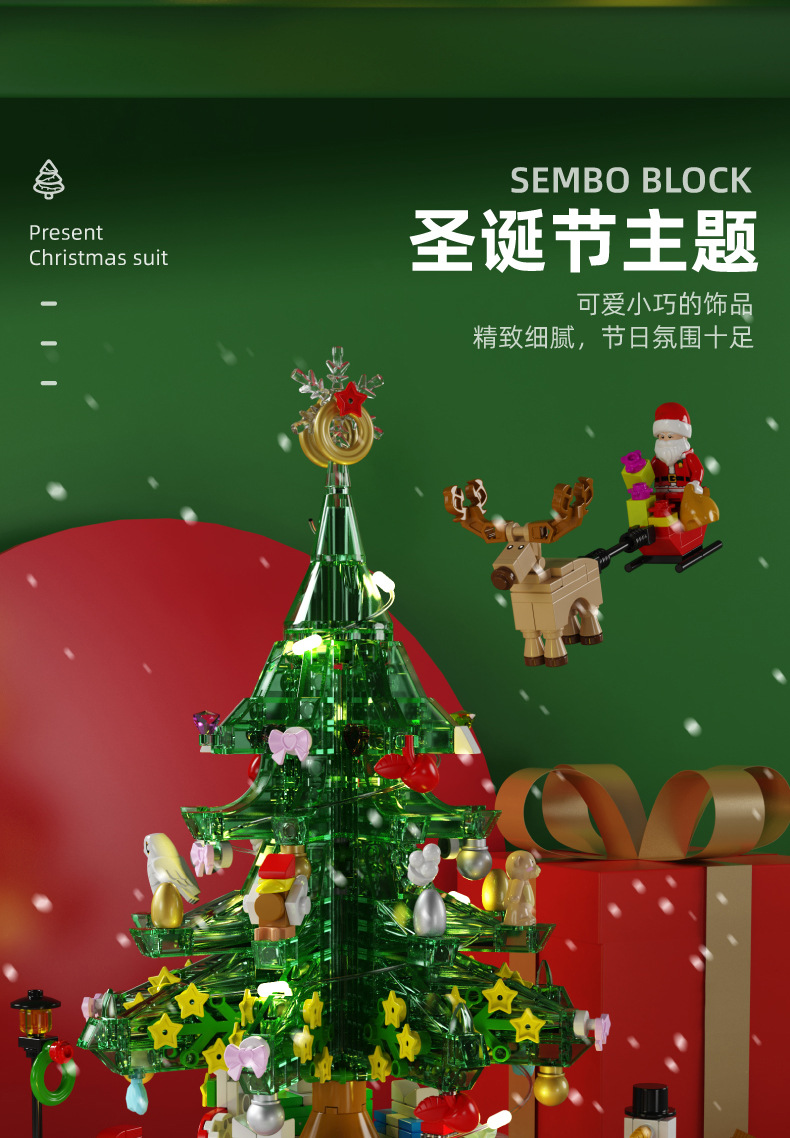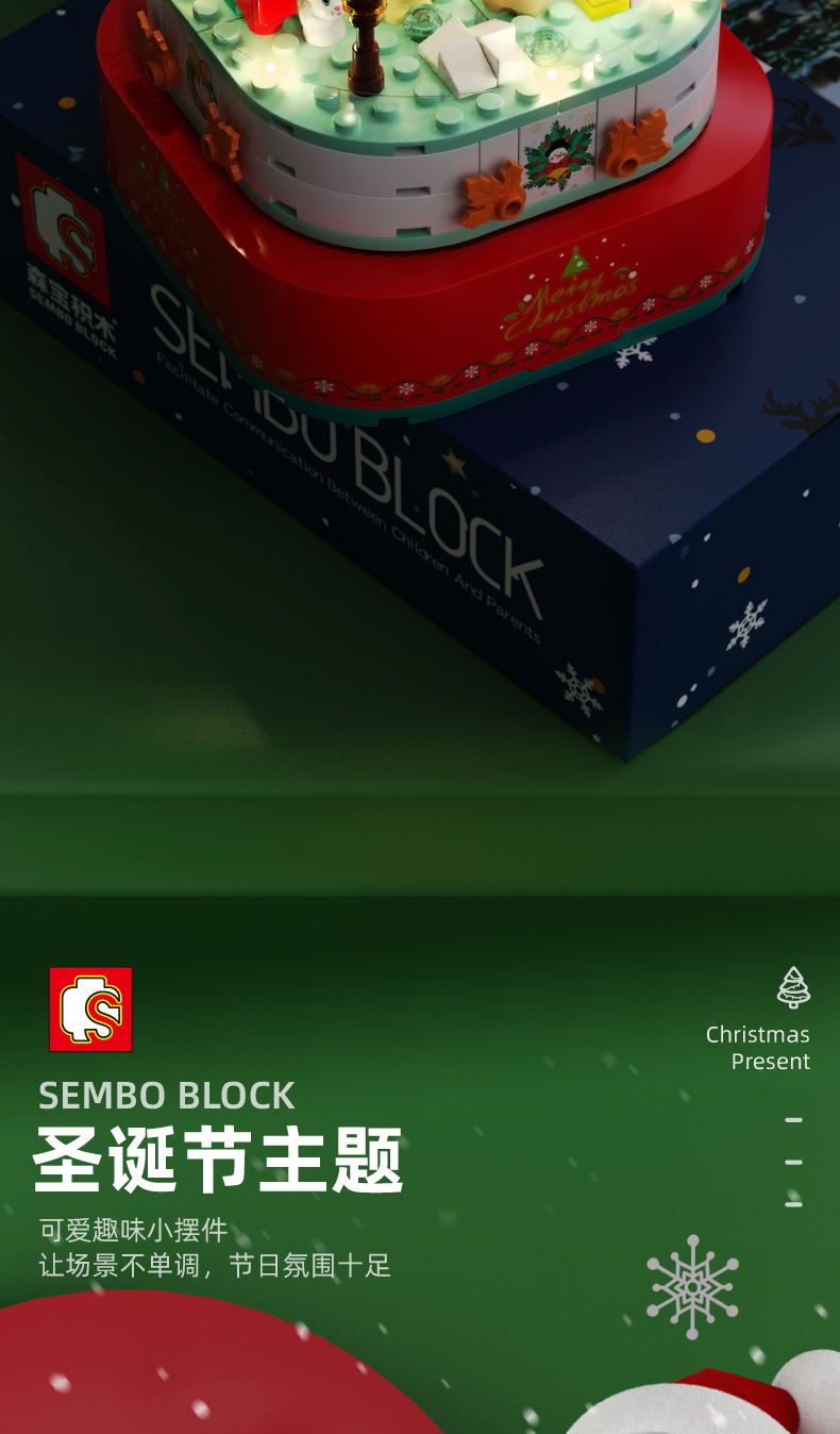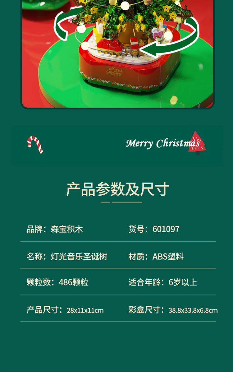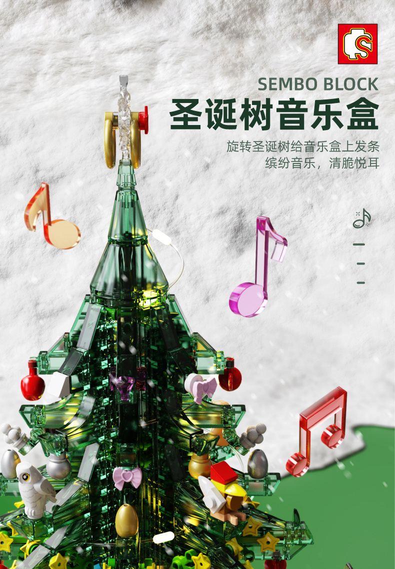 【圣诞礼品】森宝积木 音乐灯光 音乐盒圣诞树 旋转小屋拼装积木儿童玩具节日礼物 带发光灯源