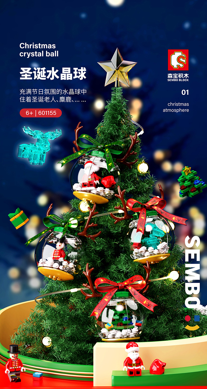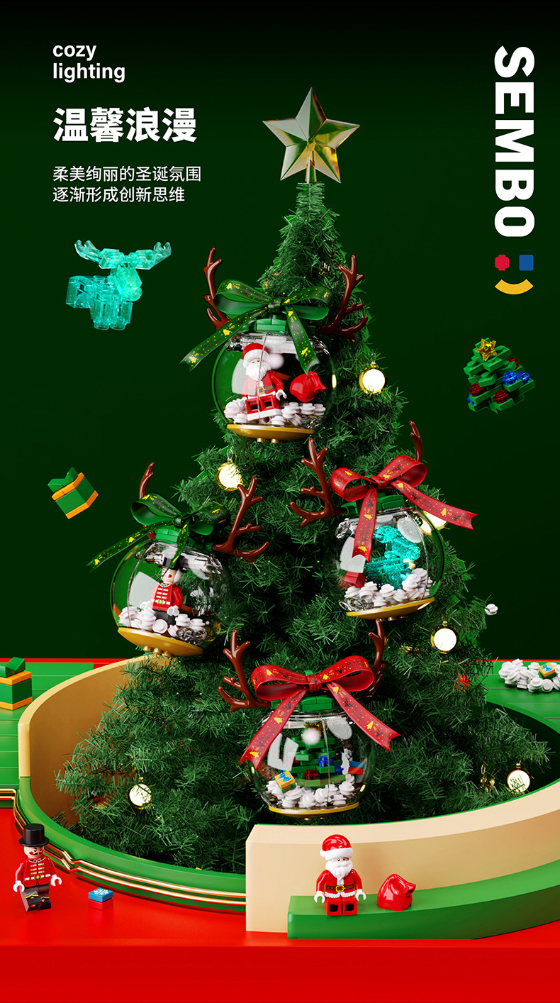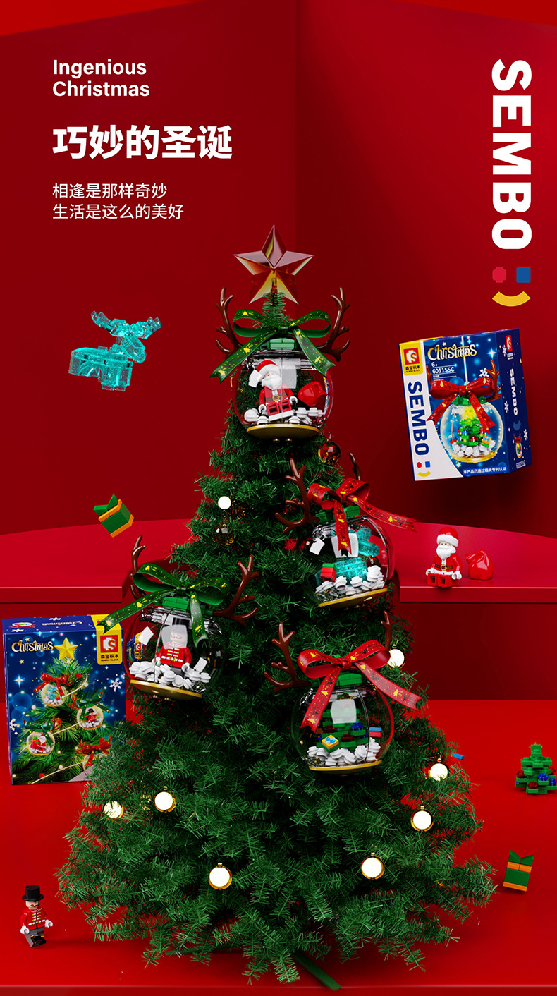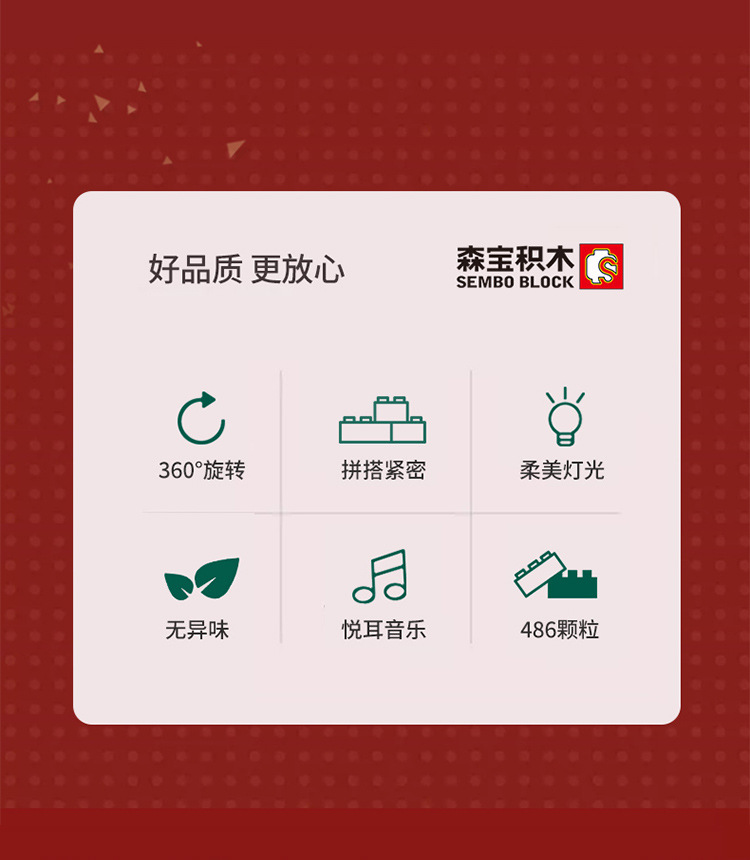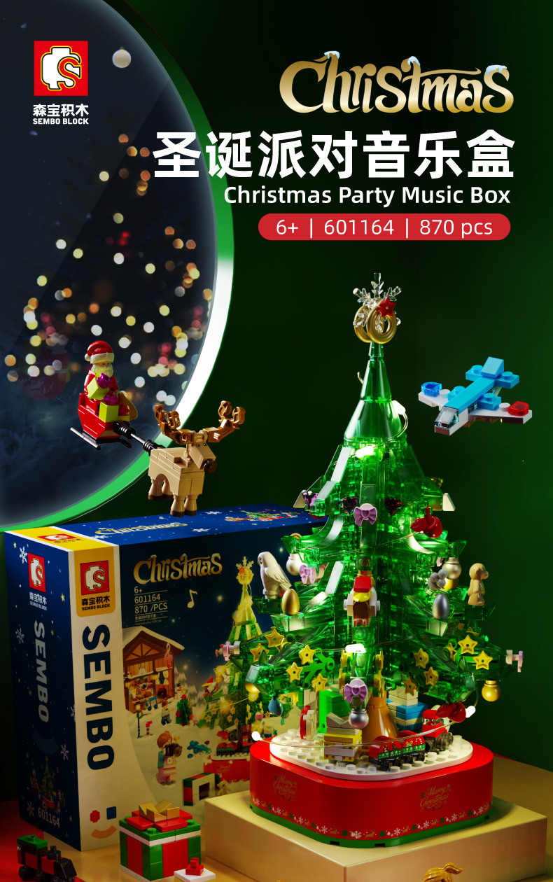 【圣诞礼品】森宝积木 音乐灯光 音乐盒圣诞树 旋转小屋拼装积木儿童玩具节日礼物 带发光灯源