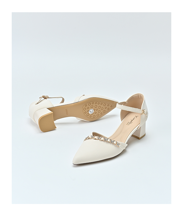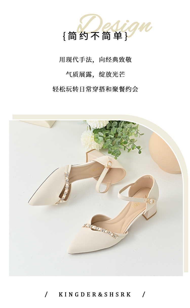 经典鲨2025年夏季款简约尖头中粗跟侧空气质平底单鞋凉鞋女KW87-529061