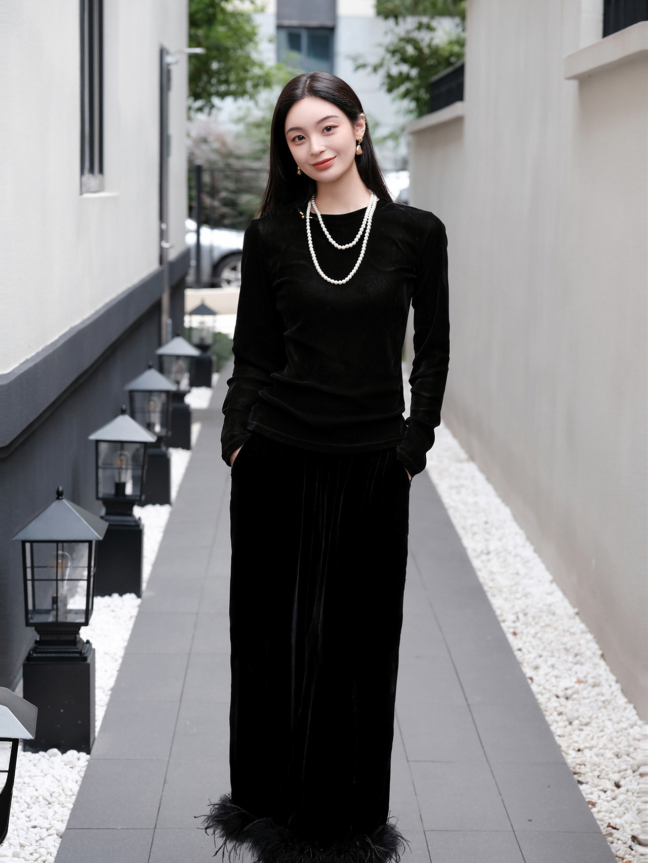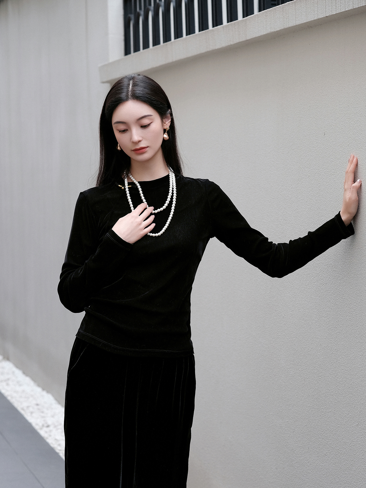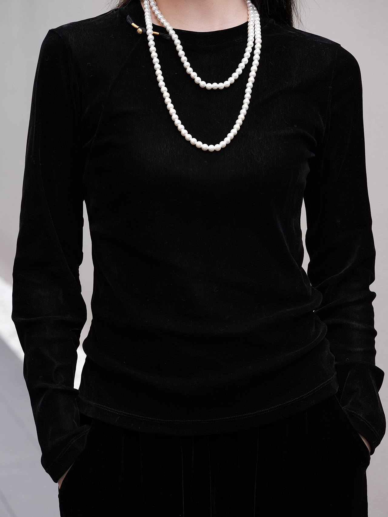 盛唐婧 | 时尚百搭高弹中式打底衫-黑色