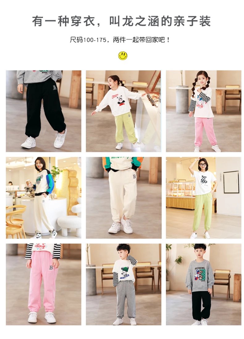 【早春特价清仓】龙之涵 儿童精棉字母印花卫裤 亲子款早春长裤 婴幼儿A类标准