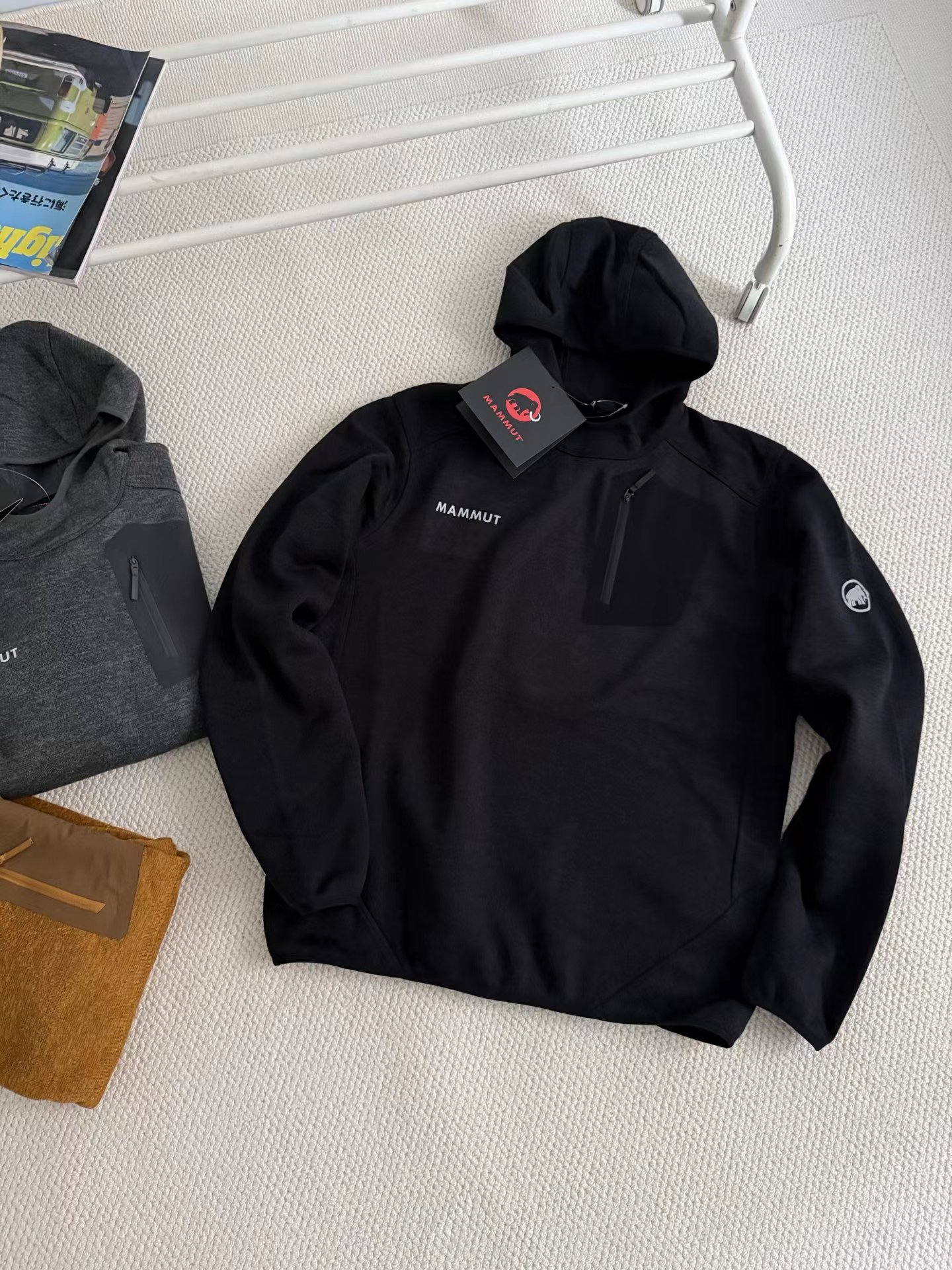 连帽压胶口袋抓绒衣连帽夹克户外保暖,500克复合抓绒Polartec保暖摇粒绒!不起球!不静电!加绒加厚!可单穿可做中间层!连帽设计,防风保暖护脖有型!拉链开衫设计!复古百搭!反复洗涤不变形!超赞的4D立体廓形剪裁!上身的确显瘦有型!保暖又不臃肿!全身三处印花设计!胸口印花logo点缀+户外拉链胸袋设计!情侣款!闭眼入!重磅保暖单品!