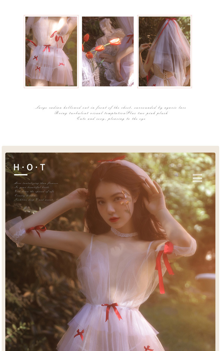 霏慕情趣内衣梦幻蝴蝶结网纱新娘套装