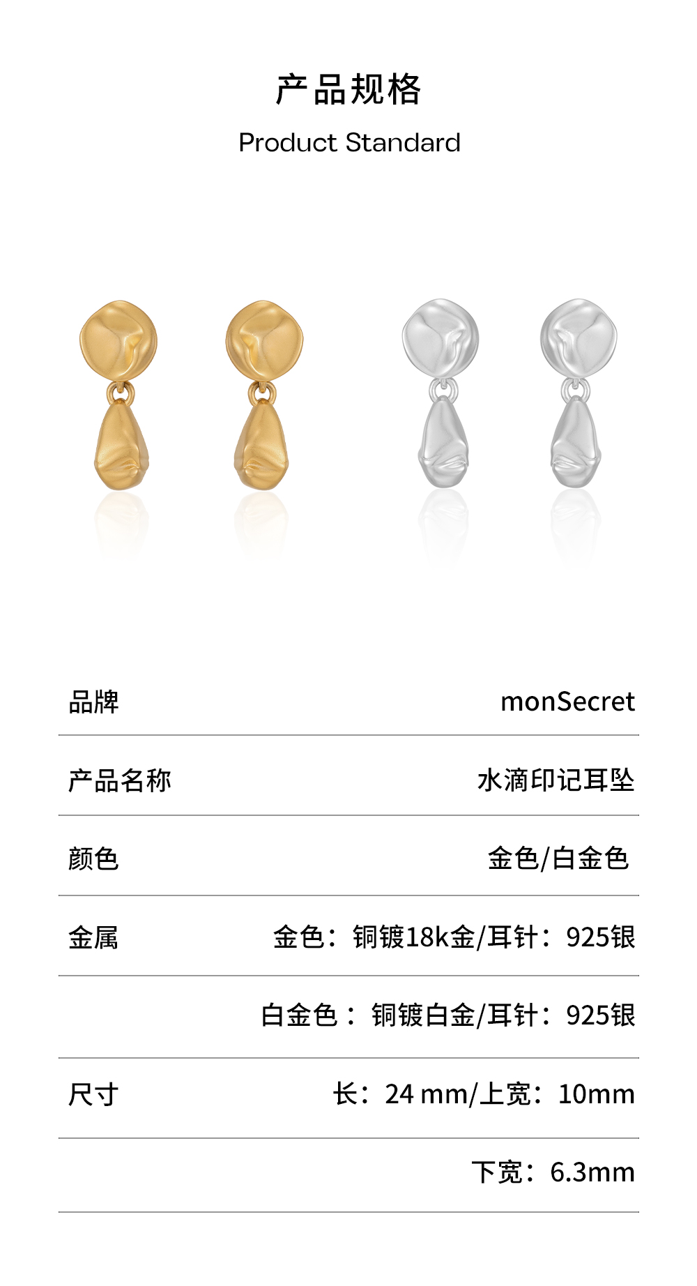 monSecret|PURE0108 水滴印记耳钉【PURE】 [ 金 / 银 ]