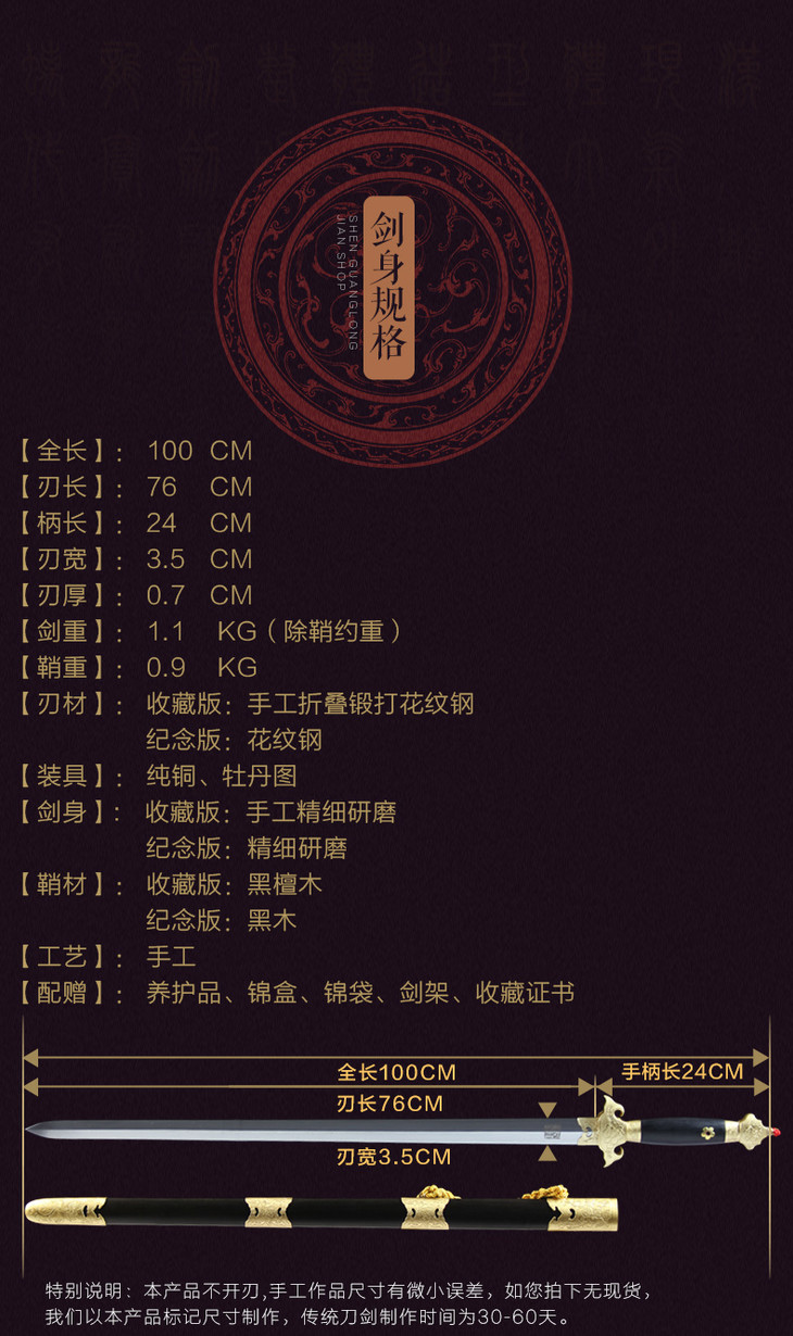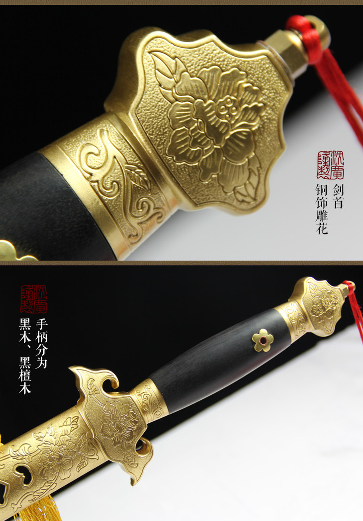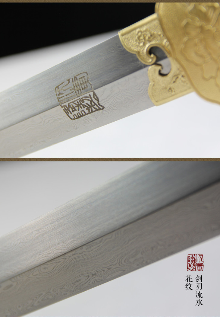牡丹秋水剑 清式宝剑 龙泉沈广隆宝剑 花纹钢宝剑 手工剑 工艺品 未开刃