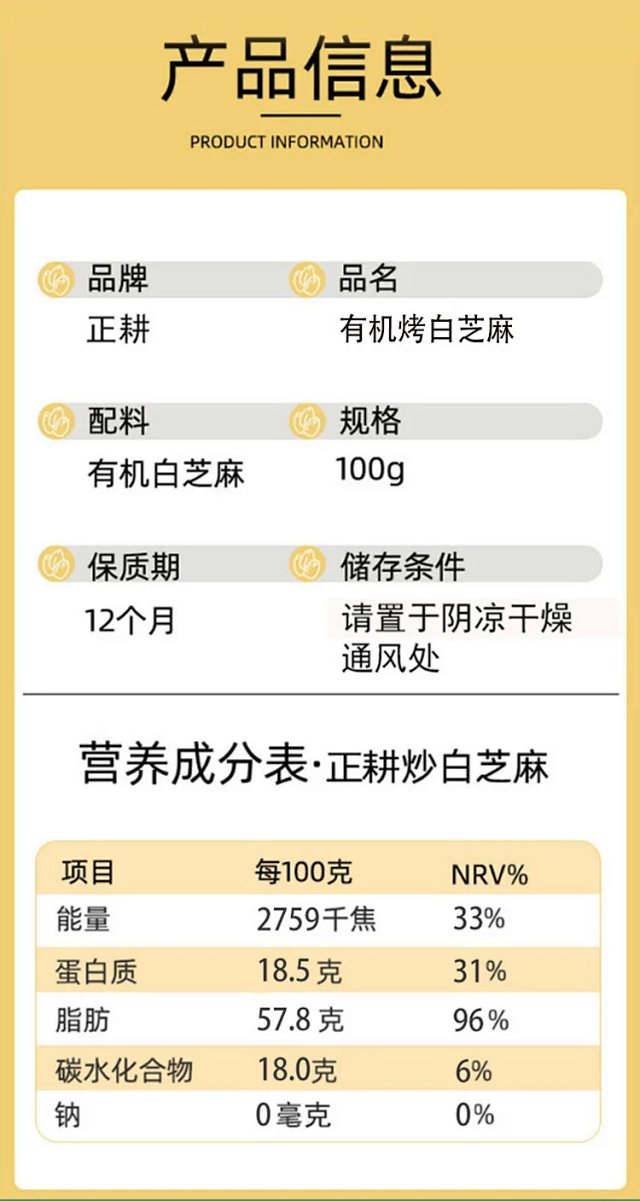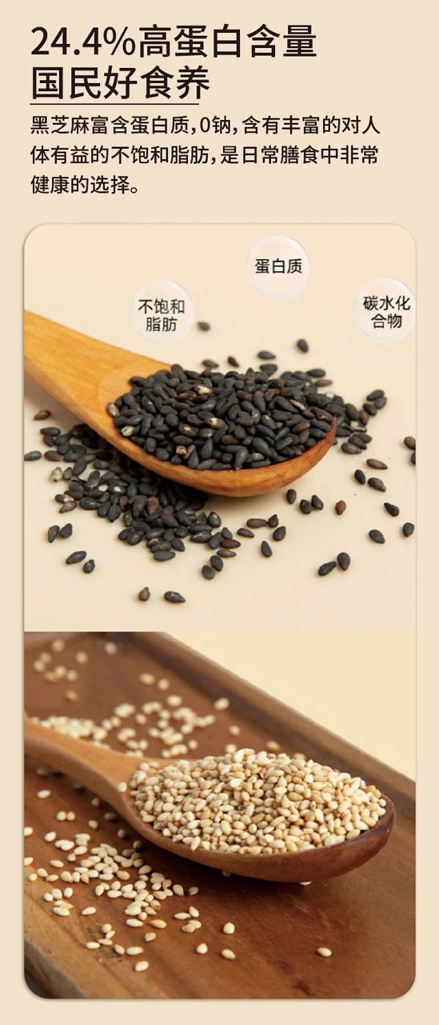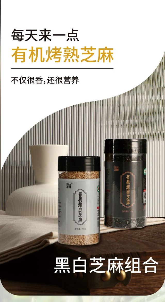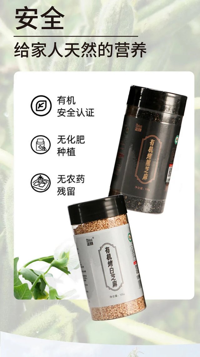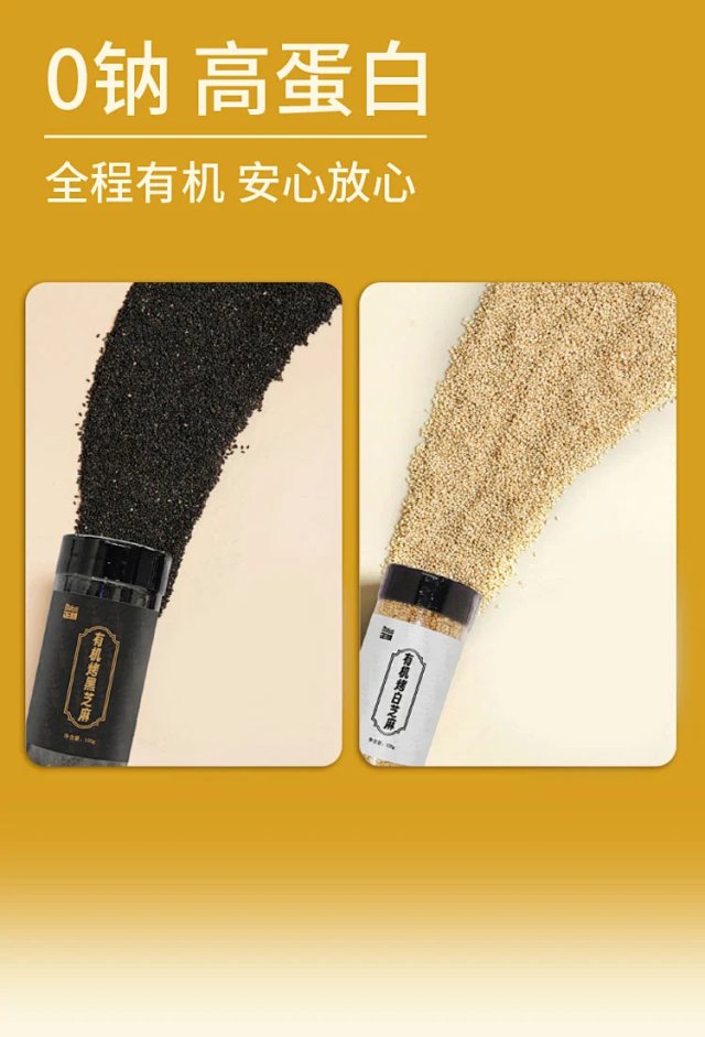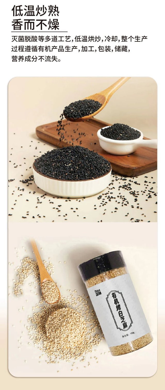有机烤白芝麻/黑芝麻,低温烘焙