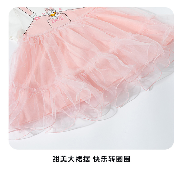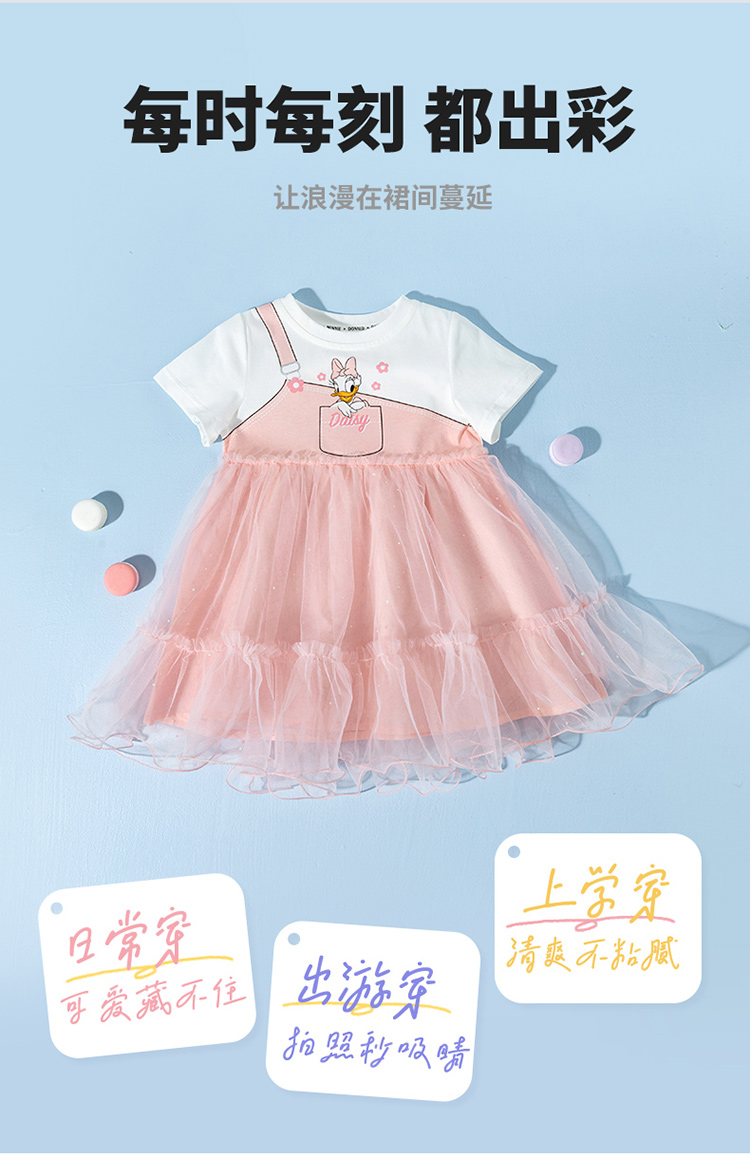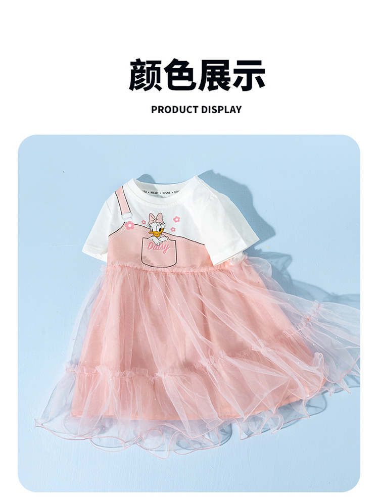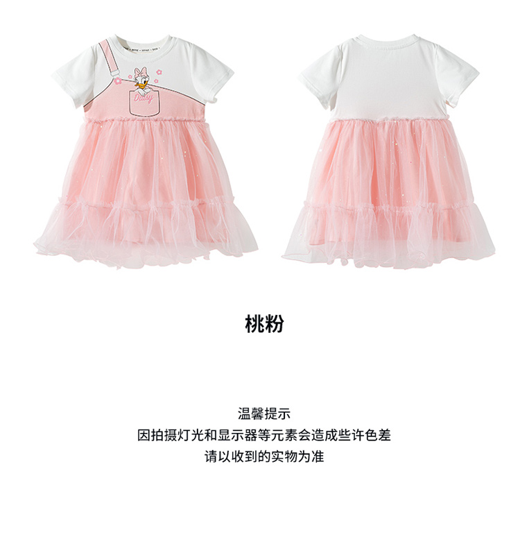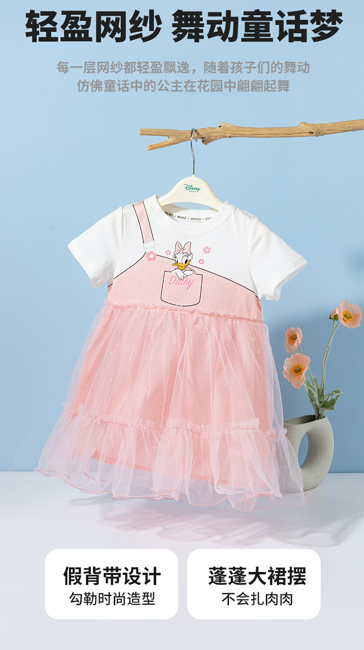 迪士尼2025夏季新款女童短袖连衣裙儿童休闲T恤裙轻薄透气网纱裙ZD2EQ006