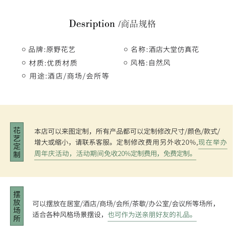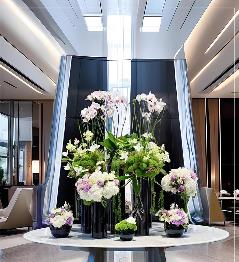 酒店大堂仿真花新年装饰花摆件中庭圆桌大厅别墅售楼商场会所假花