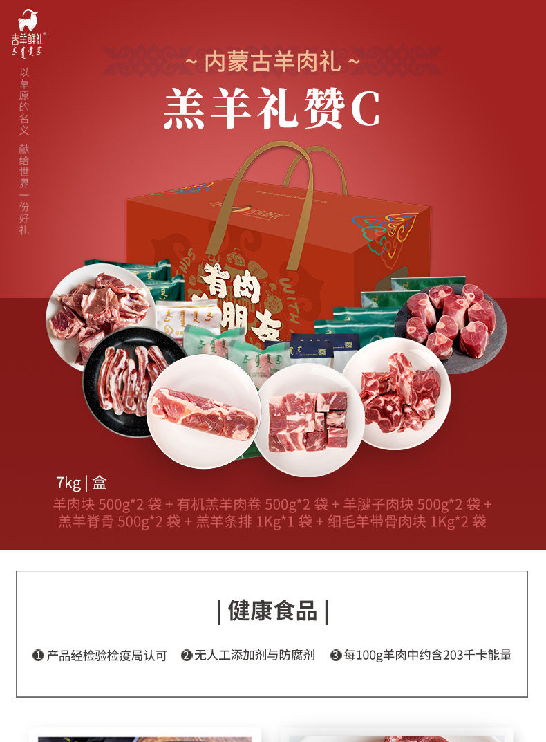 【羔羊.礼赞C】7kg 吉羊鲜礼品牌羊肉礼盒内蒙古生鲜特产