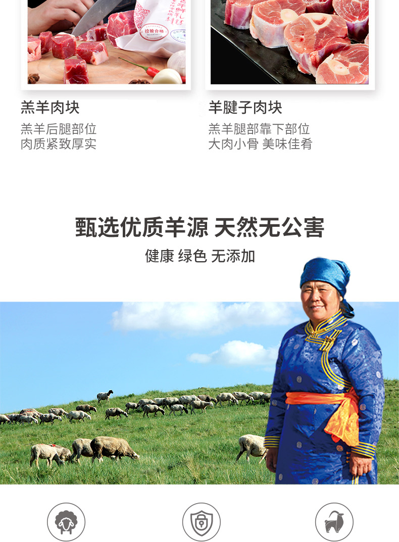 【羔羊肉块500g】细毛羊 羔羊肉块 炖羊肉内蒙古羊肉食材