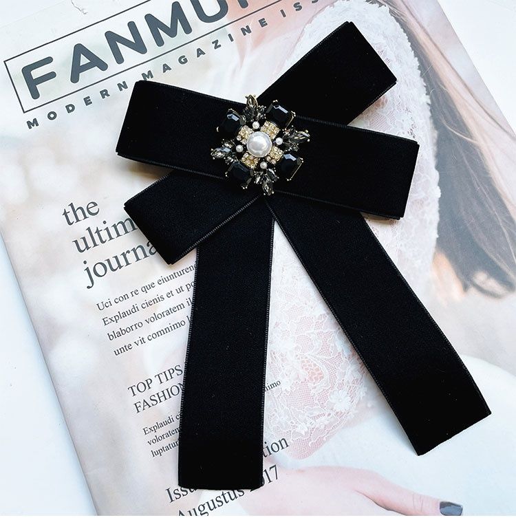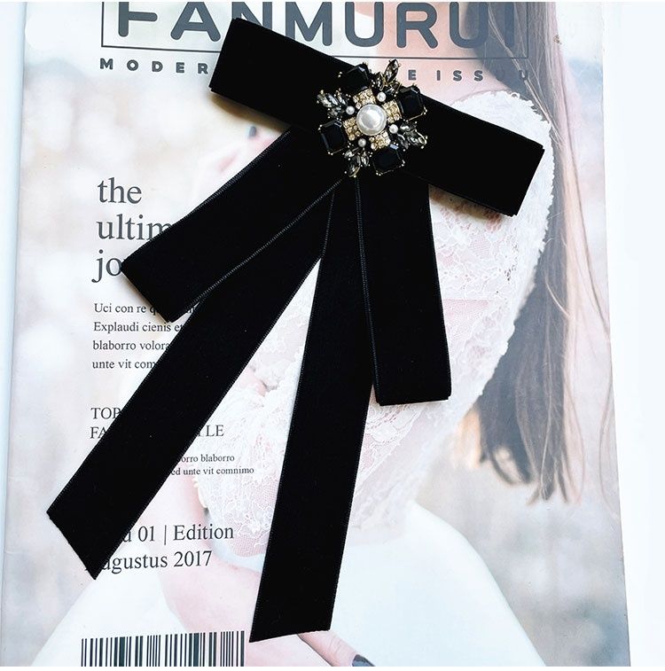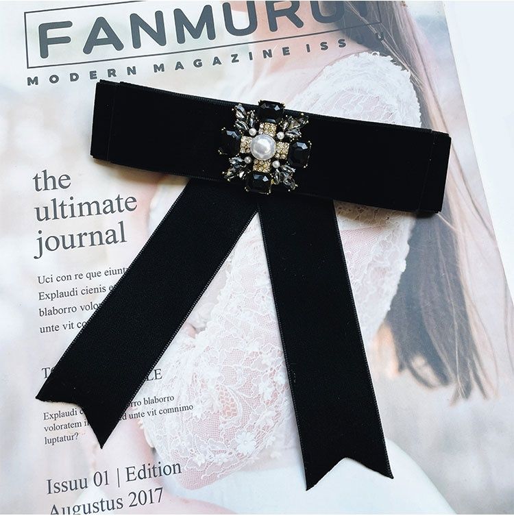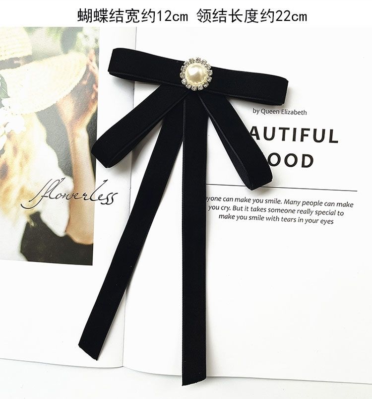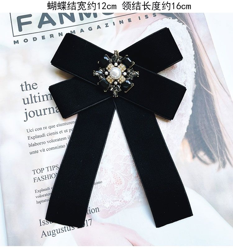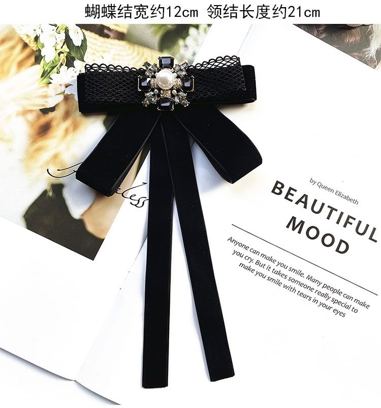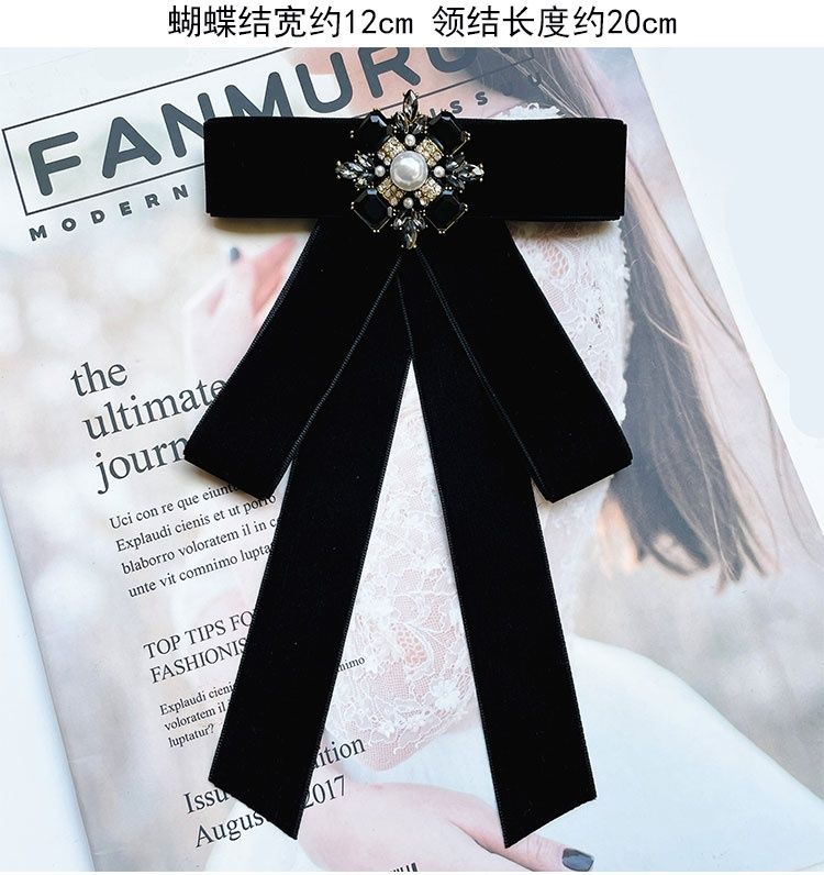韩国东大门黑色丝绒蝴蝶结领结女学院风衬衫领口配饰银行职业领花