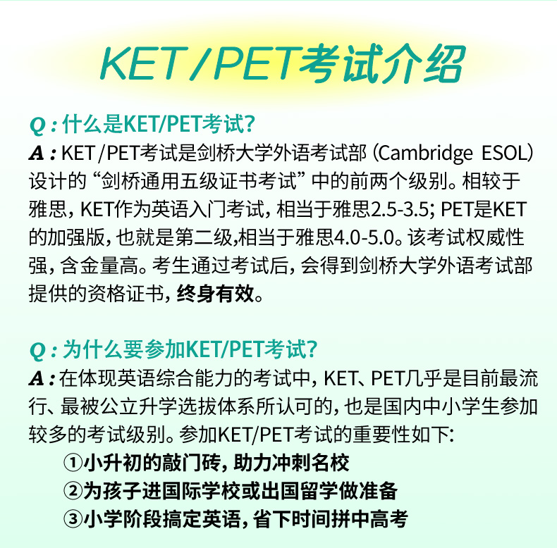2. 剑桥KET阅读基础训练,基础技能训练+词汇句型积累+5套模拟训练;